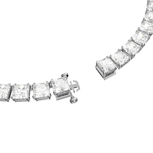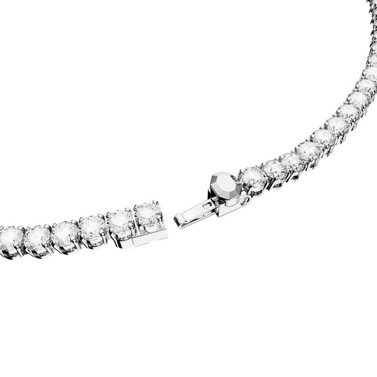 Matrix Tennis Halskette, Kristallperle, Rundschliff, Weiß, Rhodiniert