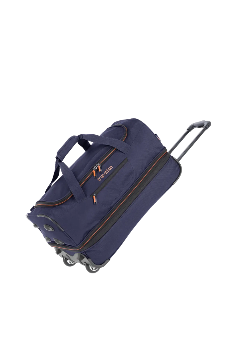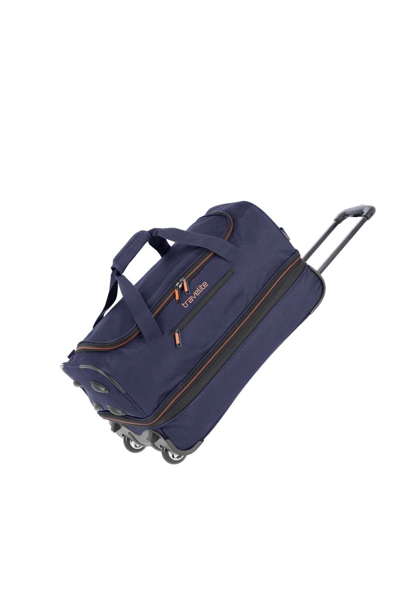Der ideale Begleiter für Sport und Freizeit –Basics vom Hamburger Reisegepäckspezialisten travelite. Die sportliche Trolley Reisetasche wurde speziell für Reisende mit variablem Gepäck entwickelt. Dank der integrierten Dehnfalte lässt sich das Volumen blitzschnell erweitern und weiteres Gepäck mitnehmen - perfekt, falls der nächste Shoppingtrip mal etwas größer ausfällt. Die Trolley Reisetasche ist aus besonders widerstandsfähigem Polyester gefertigt und damit für verschiedenste Belastungen geeignet. In der kleinen Außentasche lassen sich die Sonnenbrille oder das Flugticket sicher verstauen. Aufgrund der großen Öffnung kann das Hauptfach leicht bepackt werden. Die beiden laufruhigen Inlinerrollen sowie das stabile Teleskopgestänge ermöglichen ein bequemes Ziehen der Reisetasche über verschiedene Untergründe. Mit den beiden Tragegriffen bietet die Reisetasche zudem einen hohen Tragekomfort. Basics – bestens gerüstet für den nächsten Ausflug.