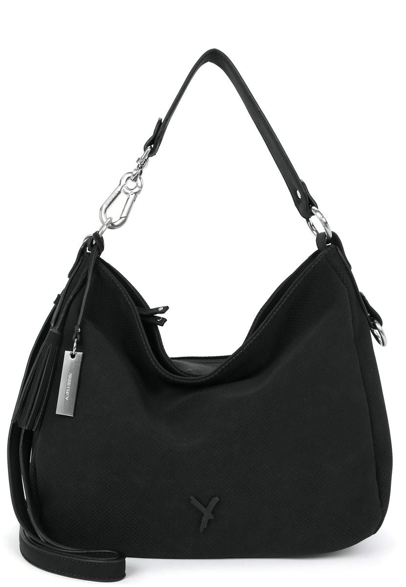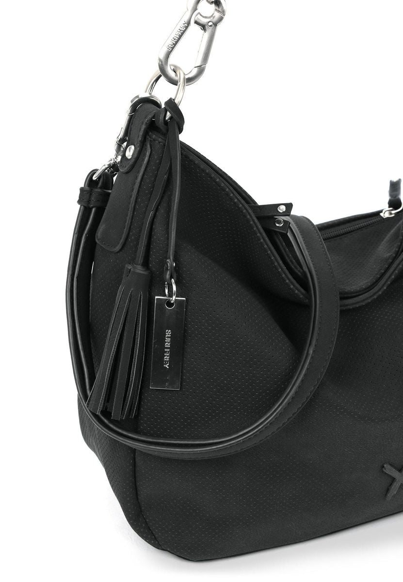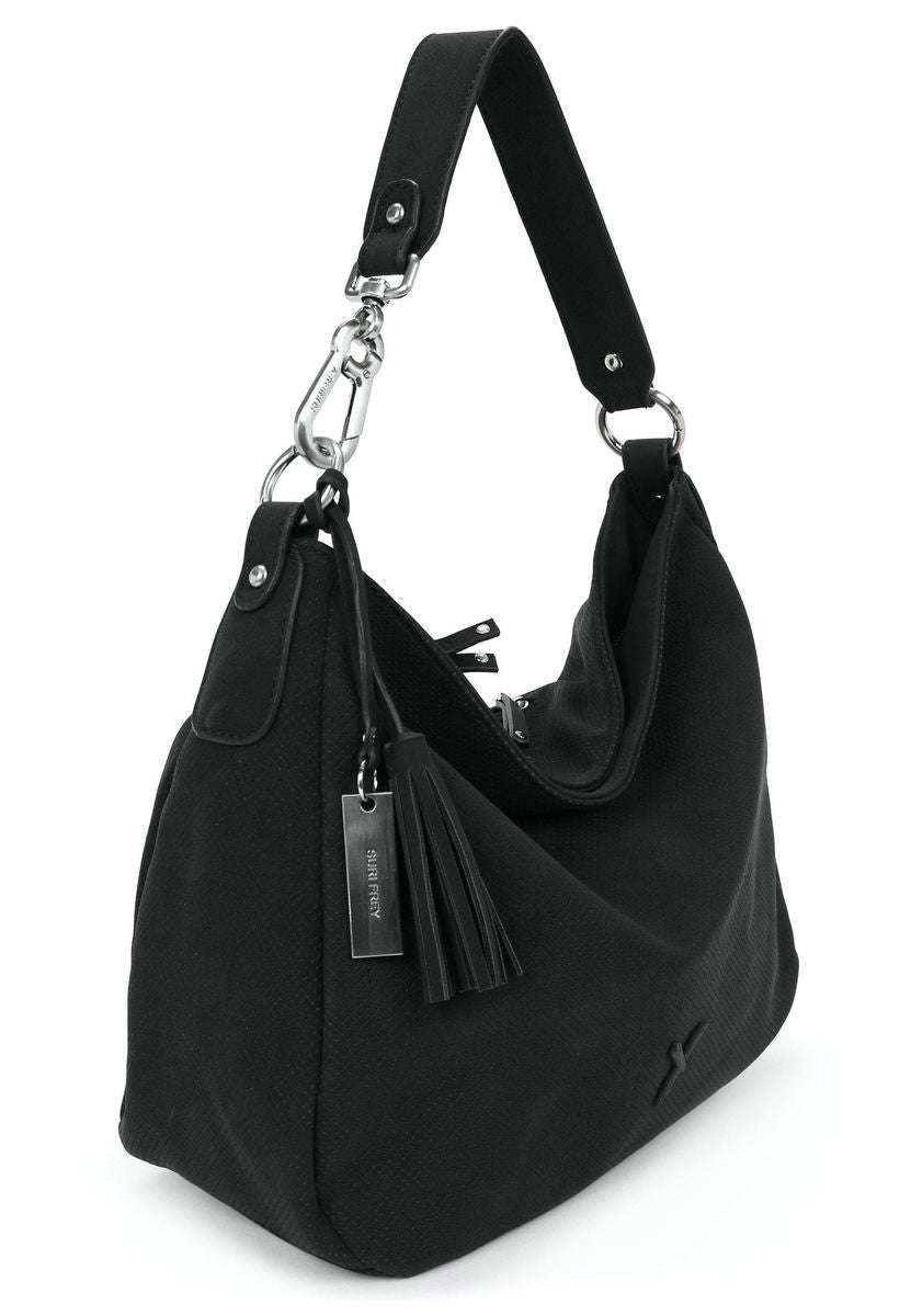 Persönlichkeit zeigen - mit SURI FREY Authentisch, selbstbewusst und schön - so zeigen sich Frauen im Alltag. Übrigens am liebsten mit ihrer Lieblingstasche. Mit Romy - dem schicken Beutel in Uni-Design mit Quaste - ist die liebste neue Begleitung im Alltag jederzeit dabei. Ob für Office, Uni oder in der Freizeit - mit ihm lässt sich jedes Abenteuer bestreiten. Die Produkte des beliebten Labels SURI FREY stehen für tierfreundliche Styles sowie Designs und nutzen gänzlich vegane Inhaltsstoffe. Das beweist auch das durch die PETA verliehene Logo „PETA-Approved Vegan“, das für beste Standards bei der Produktion ohne tierische Inhaltsstoffe steht. Gefertigt ist das Modell, das sich mit einem Reißverschluss verschließen lässt, aus Feinsynthetik. Durch das Material ist es angenehm im Griff. Mit seiner Lasercut-Optik und dem Uni-Design ist der hochwertige Beutel ein echter Hingucker. Wer viel auf Achse ist, will einfach immer einen besonderen Auftritt hinlegen. SURI FREY hat genau die Accessoires, die Frauen lieben und die jedes Outfit gekonnt vervollständigen. Der Beutel hat ein übersichtliches Hauptfach und eine Reißverschluss-Mittelwand, die praktisch für die geschützte Aufbewahrung der wichtigsten Dinge ist. Dank eines Rückfaches mit Reißverschluss hat man zusätzlichen Stauraum und unkomplizierten Zugriff auf alle unentbehrlichen Dinge. Für alle, die eine samtige Haptik lieben - Romy ist angenehm anschmiegsam. Eine Quaste schmückt optisch und hebt das besondere Design dieses neuen Favoriten hervor. Mit einem komfortablen, längenverstellbaren und abnehmbaren Umhängeriemen und dem Tragegriff wird der neue Lieblingsbegleiter ganz entspannt als Schultertasche getragen. Manchmal braucht man etwas mehr Platz in der Tasche. In dieses Modell passt einfach alles - Portemonnaie, Smartphone und zur Not noch ein Tablet, das einem die Wartezeit auf die Freundin versüßt, wenn sie mal wieder im Stau steckt.
