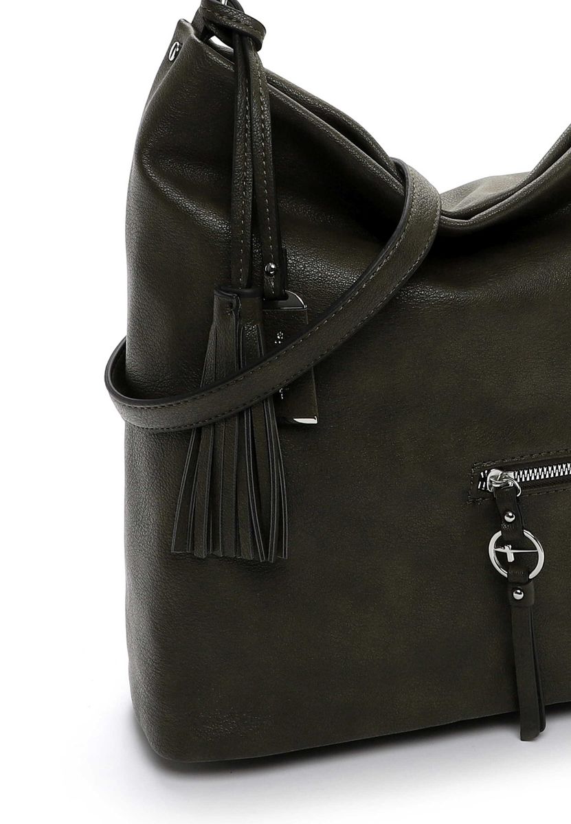 Tolle Accessoires für modebewusste Frauen Eine Handtasche zeigt die Persönlichkeit einer Frau. Ob hundertpro geordnet oder etwas chaotisch - sie wird einfach heißgeliebt! Der Beutel TAS Nele kommt in Echtleder-Optik mit Logo-Anhänger und sieht einfach gut aus. Ob für Office, Uni oder in der freien Zeit - mit ihm lässt sich einfach jedes Abenteuer bestreiten. Das Modell besteht aus Feinsynthetik und lässt sich mit einem Reißverschluss verschließen. Die Echtleder-Optik und das Uni-Design sind fein gearbeitet und verleihen dem Beutel einen edlen Look. Ob jung oder nicht mehr ganz so jung, klassisch oder modern: Tamaris hat für jeden Look eine aufregende Auswahl an tollen Accessoires. Der Beutel hat ein übersichtliches Hauptfach. Ein Reißverschluss-Fach auf der Rückseite sorgt für zusätzlichen Stauraum und erlaubt den unkomplizierten Zugang zu Dingen, die man zügig griffbereit haben möchte. Für alle, die eine weiche Haptik lieben - TAS Nele ist angenehm anschmiegsam. Ein Logo-Anhänger schmückt optisch und hebt das besondere Design dieses neuen Favoriten hervor. Dieser neue Lieblingsbegleiter wird dank längenverstellbarem, abnehmbarem Umhängeriemen und abnehmbarem Tragegriff einfach und bequem über der Schulter getragen. Viel Platz für alles, was man als Frau so mit sich herumträgt, bietet der Beutel.
