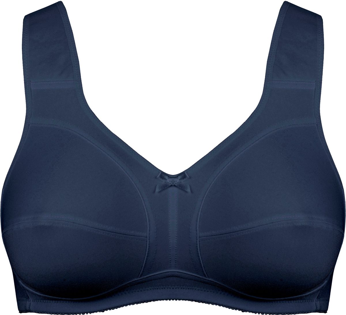 Genähter BH ohne Bügel. BH speziell für größere Größen konzipiert. Das Material, eine Polyester/Baumwolle Mischung wirkt leicht, ist aber dank seiner reduzierten Elastizität sehr formstabil. Die breiten Stoffträger sind weich gepolstert und entlasten dadurch besonders den Schulterbereich. Dieser BH formt eine Figur betonende Büste, und gibt der Trägerin eine sehr feminine Silhouette.