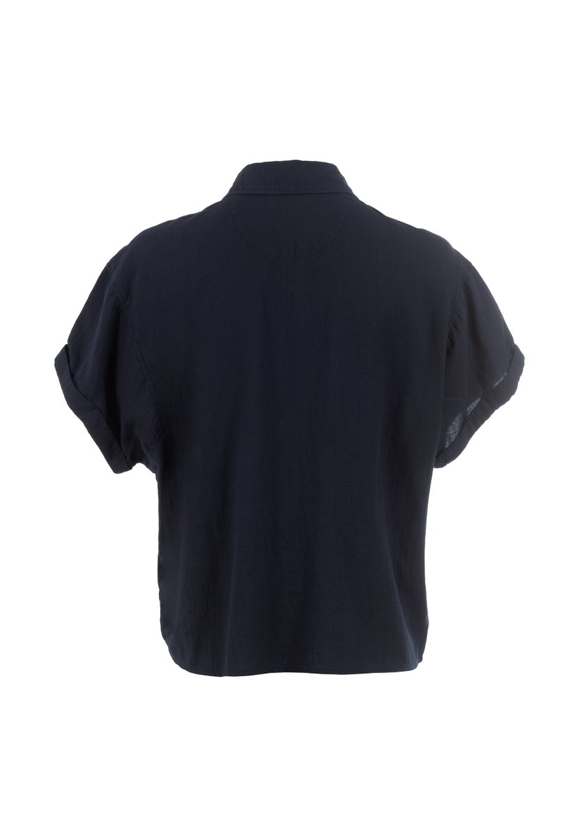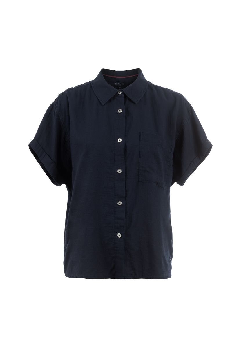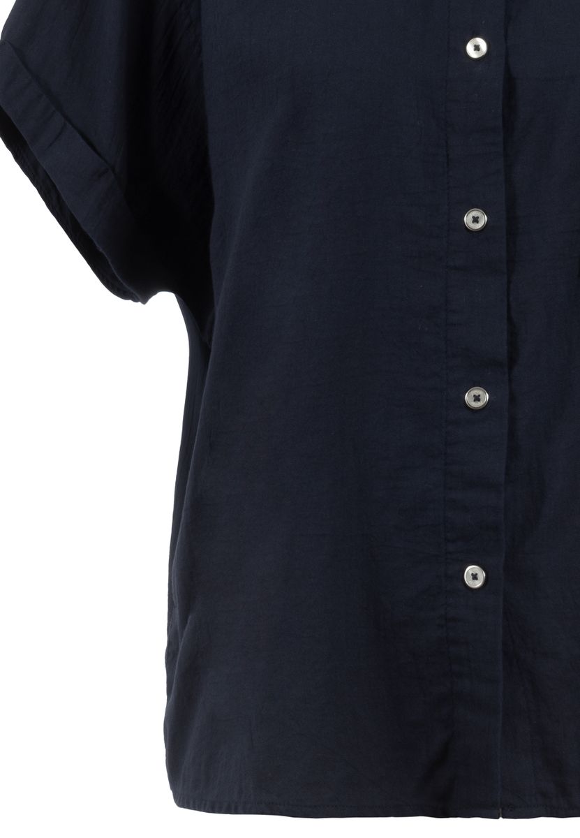 Lockere, kurzärmelige Bluse mit Knopfleiste und Hemdblusenkragen. Mit überschnittener Schulter für einen coolen Look. Die einfarbig gehaltene Bluse kann vielseitig kombiniert werden.