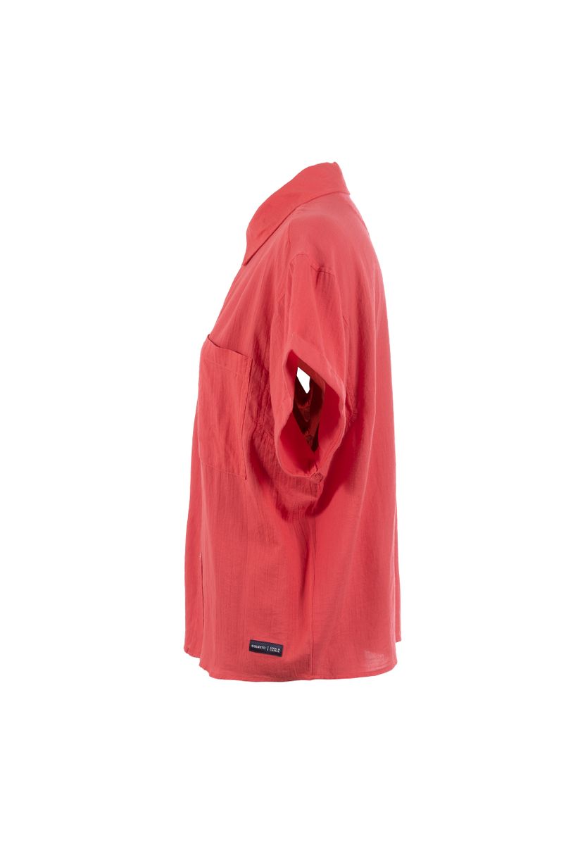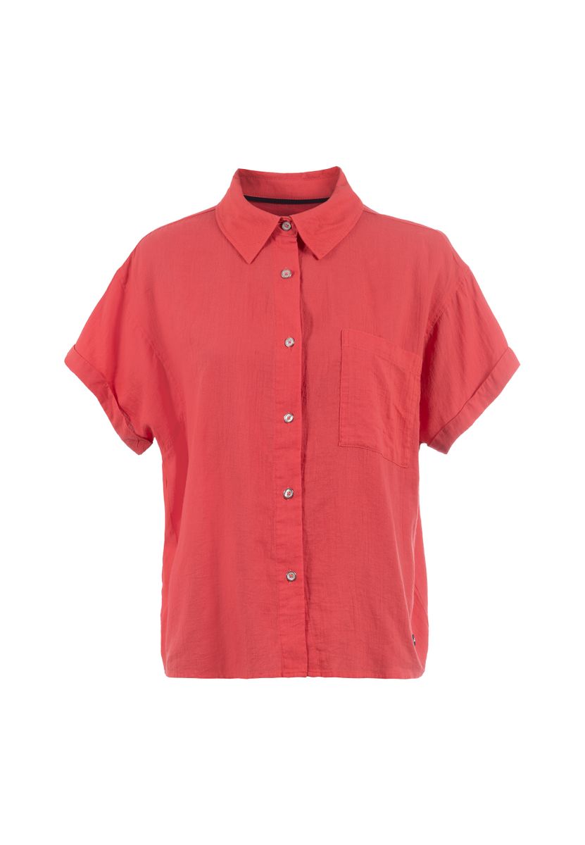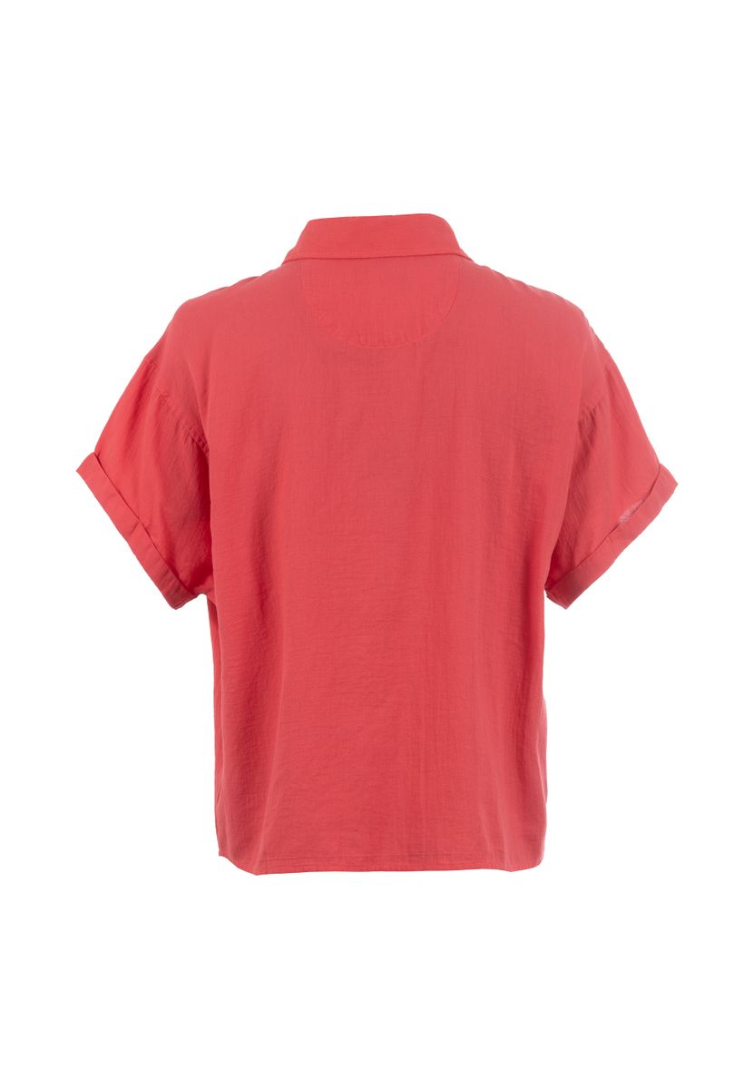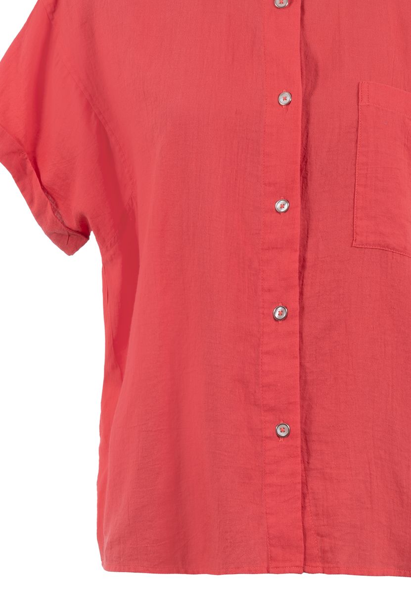 Lockere, kurzärmelige Bluse mit Knopfleiste und Hemdblusenkragen. Mit überschnittener Schulter für einen coolen Look. Die einfarbig gehaltene Bluse kann vielseitig kombiniert werden.