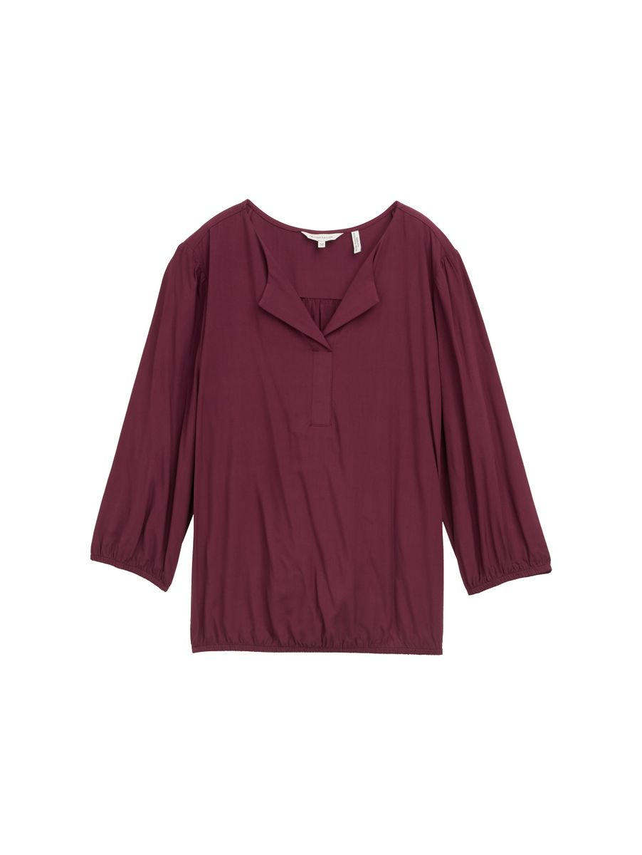 * Bluse aus Viskose mit 3/4-Arm und V-Ausschnitt. Mit elastischem Gummibund am Saum und leichte Raffungen an den Schultern und auf der Rückseite.
