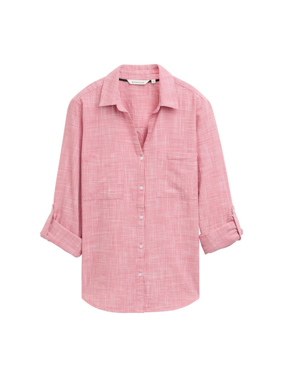 * langärmlig mit Kragen, V-Öffnung und Knopfleiste