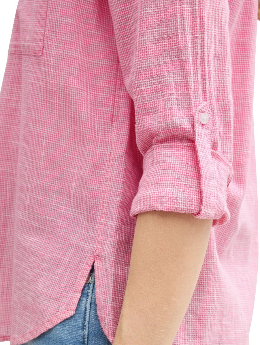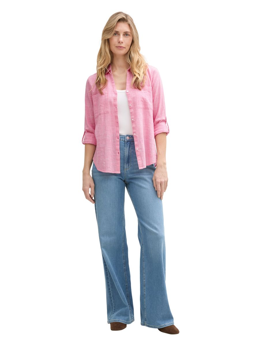 * langärmlig mit Kragen, V-Öffnung und Knopfleiste