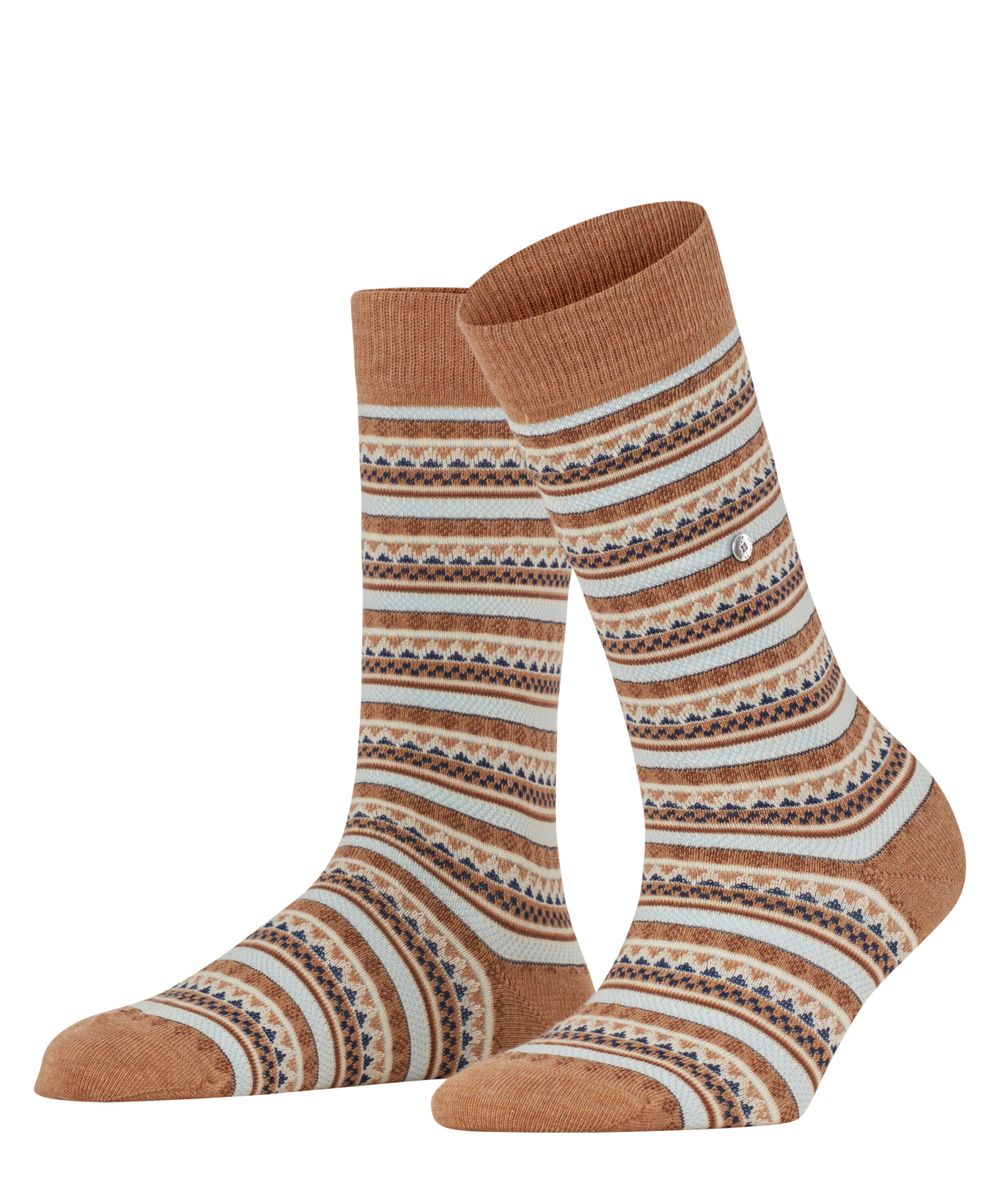 Kalte Füße gehören der Vergangenheit an! Bei diesen winterlichen Strümpfen trifft das klassische Norweger-Muster auf herbstlich-schöne Farbkombinationen. Das Ergebnis ist ein Style, der dank großer Farbvielfalt vielseitig kombinierbar ist und durch einen Anteil von angenehmer Alpaka-Wolle zuverlässig die Füße wärmt.
