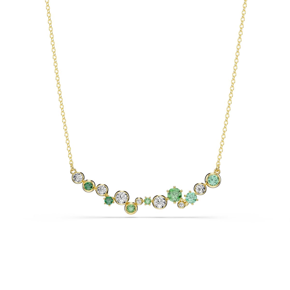 Beschreibung: Diese faszinierende Constella Halskette in Goldlegierungsschicht verleiht Ihrer Alltagsgarderobe neue Energie. Das sternenklare Design präsentiert zentral angeordnete, klare Kristalle und grüne Swarovski Zirconia in verschiedenen Größen und Schattierungen, jeweils in Krappen- und Kesselfassungen. Dieses schillernde Arrangement an einer zierlichen Kette spiegelt die Wunder des Kosmos wider. Tragen Sie dazu die passenden Constella Ohrringe.; Familie: Constella; Max. Länge: 38,0 cm; Effektive Länge: 380,0 mm
