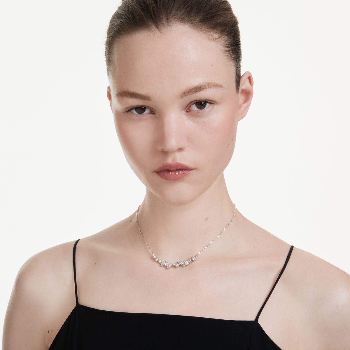 Beschreibung: Diese faszinierende, rhodinierte Constella Halskette verleiht Ihrer Alltagsgarderobe neue Energie. Das sternenklare Design präsentiert zentral angeordnete, klare Kristalle in verschiedenen Größen, jeweils in Krappen- und Kesselfassungen. Dieses schillernde Arrangement an einer zierlichen Kette spiegelt die Wunder des Kosmos wider.; Familie: Constella; Max. Länge: 38,0 cm; Effektive Länge: 380,0 mm; Anhänger: 1 x 5,8 cm