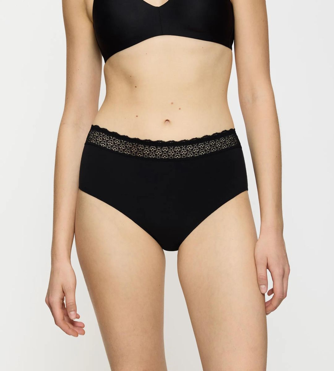 hautsympathischen und beruhigenden Eigenschaften auszeichnet. Der Bund ist mit Spitze eingefasst und ebenfalls recycelt. Ergänzt unser