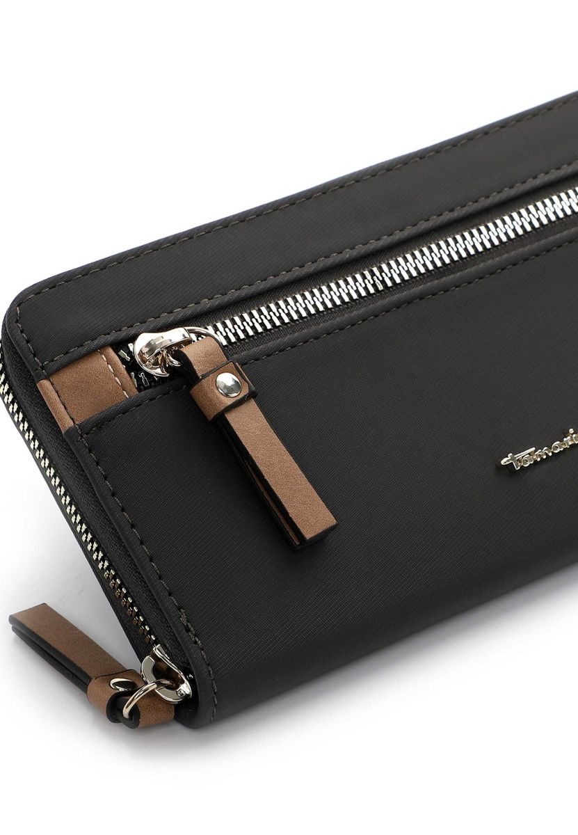 So aufregend wie das Leben Da macht das Shoppen noch mal so viel und das Bezahlen tut gar nicht mehr so weh. Die Geldbörse TAS Gertraud kommt aus Feinsynthetik mit Reißverschluss-Münzfach und bietet genug Platz für Bargeld und Karten. Das Modell besteht aus Feinsynthetik und lässt sich mit einem Reißverschluss verschließen. Mit ihrer glatten Optik und dem zweifarbigen Design ist die hochwertige Geldbörse ein echter Hingucker. Für alle Styles und alle Anlässe wird ein Outfit erst durch den passenden Begleiter perfekt - mit Tamaris können sich alle Frauen schick und elegant fühlen. Ordnung ist das halbe Leben. Ein übersichtliches Hauptfach sind in der Tasche integriert. Das Modell TAS Gertraud ist von der Haptik eher weich und daher besonders angenehm zu tragen. Einen zusätzlichen Akzent setzt Single Lettering. Klein aber oho! In diese kleine Geldbörse passt alles, was man für eine durchtanzte Nacht braucht. Ein Reißverschluss-Münzfach, 6 Kreditkartenfächer und Scheinfächer zeichnen dieses Portemonnaie aus.