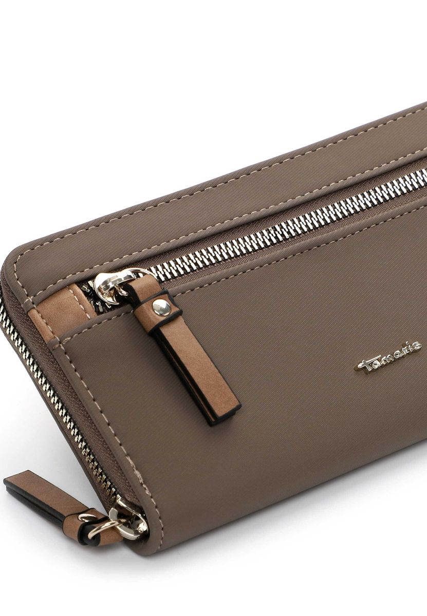 So aufregend wie das Leben Da macht das Shoppen noch mal so viel und das Bezahlen tut gar nicht mehr so weh. Die Geldbörse TAS Gertraud kommt aus Feinsynthetik mit Reißverschluss-Münzfach und bietet genug Platz für Bargeld und Karten. Das Modell besteht aus Feinsynthetik und lässt sich mit einem Reißverschluss verschließen. Mit ihrer glatten Optik und dem zweifarbigen Design ist die hochwertige Geldbörse ein echter Hingucker. Für alle Styles und alle Anlässe wird ein Outfit erst durch den passenden Begleiter perfekt - mit Tamaris können sich alle Frauen schick und elegant fühlen. Ordnung ist das halbe Leben. Ein übersichtliches Hauptfach sind in der Tasche integriert. Das Modell TAS Gertraud ist von der Haptik eher weich und daher besonders angenehm zu tragen. Einen zusätzlichen Akzent setzt Single Lettering. Klein aber oho! In diese kleine Geldbörse passt alles, was man für eine durchtanzte Nacht braucht. Ein Reißverschluss-Münzfach, 6 Kreditkartenfächer und Scheinfächer zeichnen dieses Portemonnaie aus.