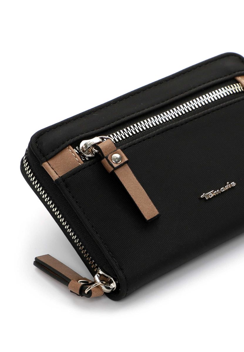 Für jeden Lebensstil das passende Accessoire Jederzeit schick im Getümmel. Die Geldbörse TAS Gertraud kommt in zweifarbigem Design mit Reißverschluss und bietet ausreichend Platz für Karten und Bargeld. Das Modell besteht aus Feinsynthetik und lässt sich mit einem Reißverschluss verschließen. Ein optisches Highlight ist die Geldbörse mit glatter Optik und dem zweifarbigen Design. Ob jung oder nicht mehr ganz so jung, klassisch oder modern: Tamaris hat für jeden Look eine umfangreiche Auswahl an attraktiven Accessoires. Ordnung ist das halbe Leben. Ein übersichtliches Hauptfach sind in der Tasche integriert. Für alle, die eine weiche Haptik lieben - TAS Gertraud ist angenehm anschmiegsam. Einen besonderen Akzent setzt Single Lettering. Klein aber oho! In diese hübsche Geldbörse passt alles, was man für eine durchtanzte Nacht braucht. Das Portemonnaie hat ein Reißverschluss-Münzfach, 4 Kreditkartenfächer und Scheinfächer.