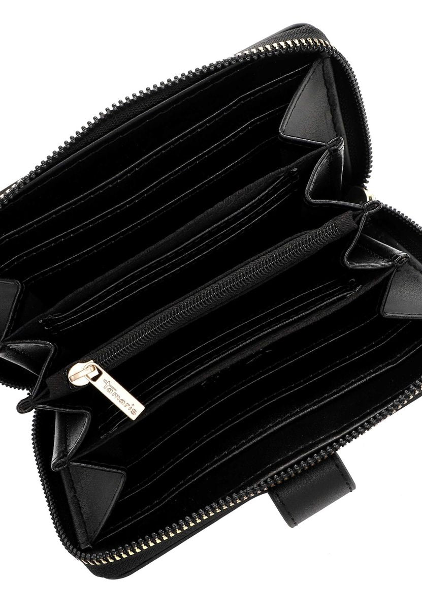 So aufregend wie das Leben Jederzeit sympathisch und attraktiv unterwegs. Die Geldbörse TAS Giorgia kommt in Uni-Design mit Reißverschluss-Münzfach und bietet ausreichend Platz für Karten und Bargeld. Das Modell besteht aus Feinsynthetik und lässt sich mit einem Reißverschluss verschließen. Mit ihrer glatten Optik und dem Uni-Design ist die hochwertige Geldbörse ein echter Hingucker. Für alle Styles und jeden Anlass wird ein Outfit erst durch den passenden Begleiter vervollständigt - mit Tamaris kann sich jede Frau sehen lassen. Ordnung ist das halbe Leben. Ein übersichtliches Hauptfach sind in der Tasche integriert. Das Modell TAS Giorgia ist von der Haptik eher fest, sodass Sachen, die nicht geknickt werden dürfen, sicher transportiert werden. Einen besonderen Akzent setzt das dekorative Emblem. Ideal für den Abend mit der Clique oder ein angesagtes Event. In die kleine Geldbörse passen Geldbörse, Handy und ein Lippenstift - also alles, was eine Frau beim Ausgehen dabei haben muss. Das Portemonnaie hat ein Reißverschluss-Münzfach, 4 Kreditkartenfächer und Scheinfächer.