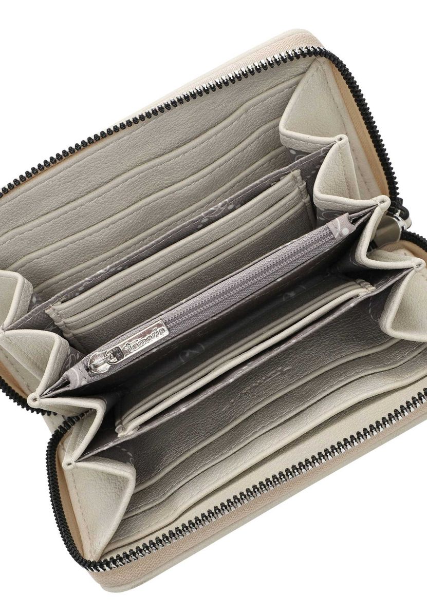 So wunderbar wie das Leben Jederzeit schick unterwegs. Mit TAS Nele - der schicken Geldbörse in Uni-Design mit Reißverschluss-Münzfach - sind Karten und Bargeld mit Stil und Klasse verwahrt. Gefertigt ist das Modell, das sich mit einem Reißverschluss verschließen lässt, aus Feinsynthetik. Durch das Material ist es angenehm im Griff. Die Echtleder-Optik und das Uni-Design sind fein gearbeitet und verleihen der Geldbörse einen edlen Look. Bei Tamaris finden alle genau das, was sie wirklich wollen. Die Geldbörse hat ein übersichtliches Hauptfach. Ein Reißverschluss-Fach auf der Rückseite schafft zusätzlichen Stauraum und ermöglicht den schnellen Zugang zu Dingen, die man zügig parat haben möchte. Das Modell TAS Nele ist von der Haptik eher weich und daher wirklich angenehm zu tragen. Einen besonderen Akzent setzt der dekorative Logo-Anhänger. Klein aber fein! In diese kleine Geldbörse passt alles, was man bei einer Abendveranstaltung braucht. Das Portemonnaie hat ein Reißverschluss-Münzfach, 4 Kreditkartenfächer und Scheinfächer.