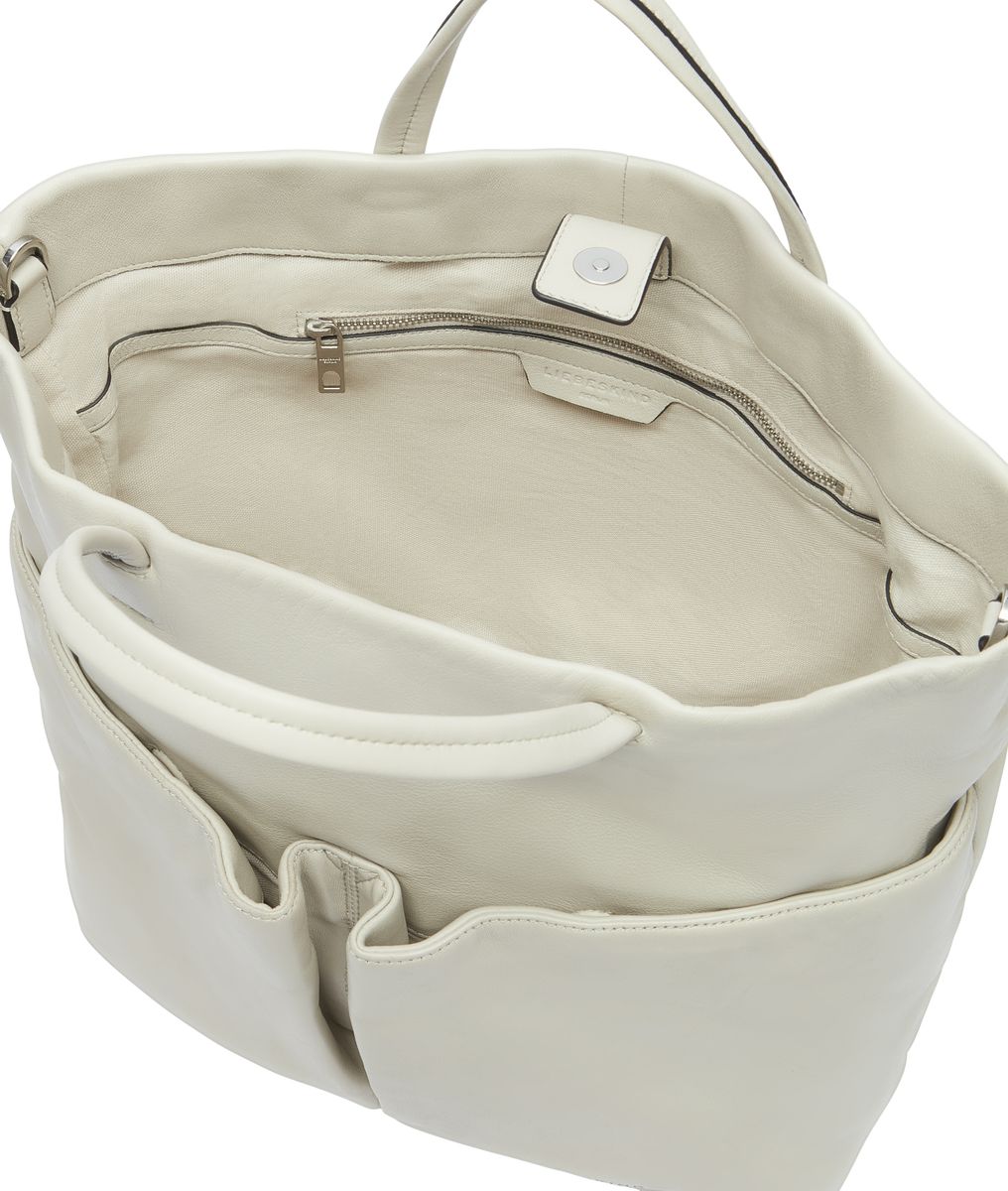 natürlich genarbtes, hochwertiges Schafsleder Hauptfach mit Magnetknopfverschluss Innenraum mit Reißverschlussfach mit zwei Rundhenkel und einem abnehmbaren Schulterhenkel frontseitiger Logoschriftzug Vorderseite mit zwei aufgesetzten Taschen Elegant & praktisch | Hera Tote L Die Hera Tote L aus hochwertigem Schafsleder begeistert mit ihrer schlichten Eleganz. Durch ihr geräumiges Innenfach bietet sie genügend Platz für den Laptop bis hin zur Trinkflasche. Besondere Hingucker sind die zwei Henkel, welche sich mit einem abnehmbaren Schulterriemen ergänzen lassen. Die zwei aufgesetzen Taschen an der Frontseite sorgen dafür, dass alle wichtigen Essentials griffbereit sind.
