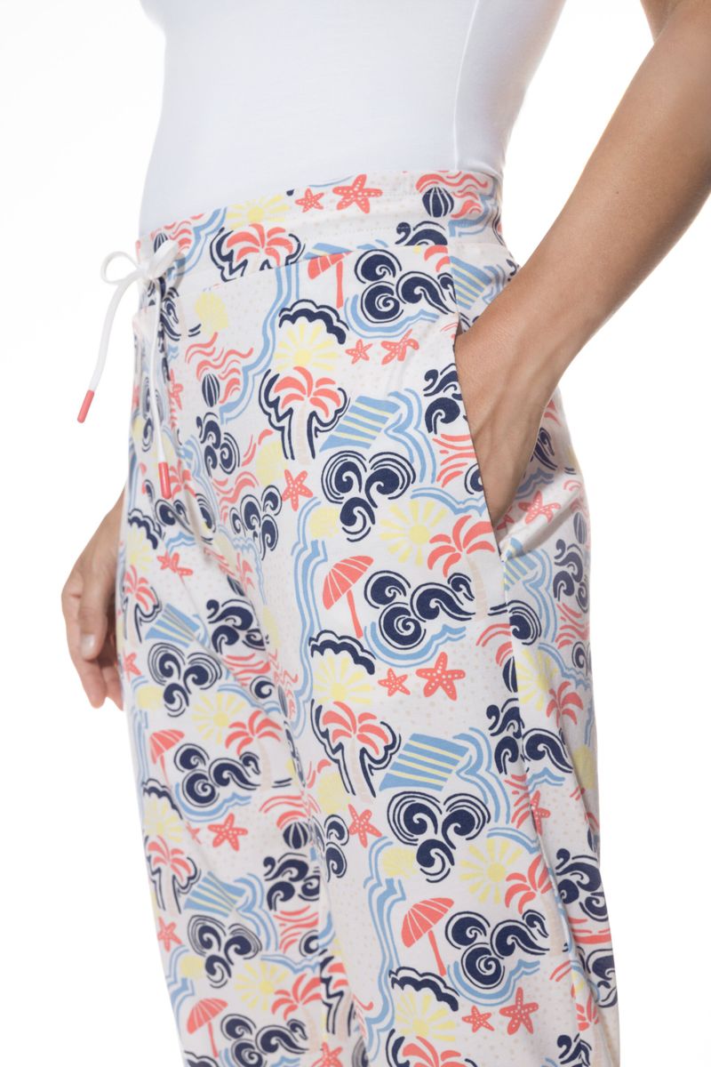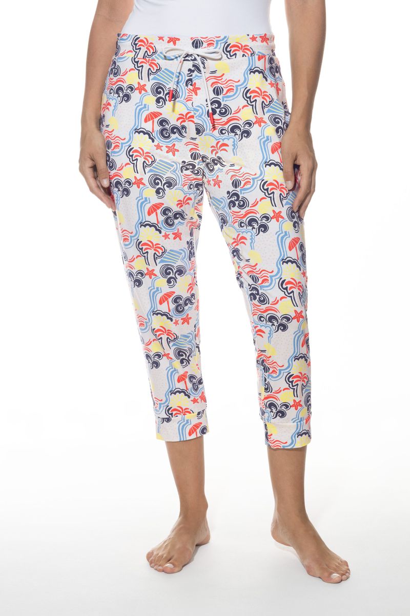 *Lounge-Hose in 3/4-Länge*Legere Passform*Komfortbund mit Kordel*Bündchen an den Beinabschlüssen*Allover-Print mit Sonne, Strand und Palmen*Mix & Match mit den passenden Oberteilen oder NOS*Cozy-Cotton-Modal-Qualität