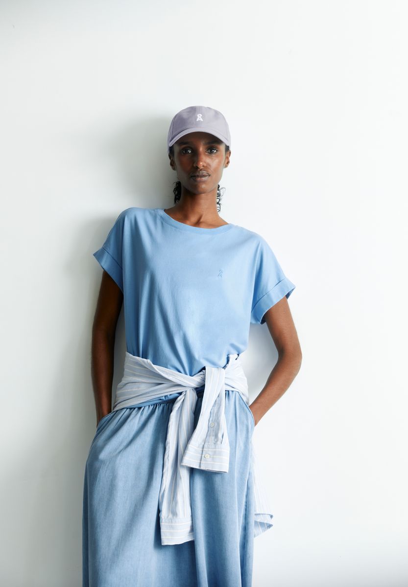 Our absolute bestseller: the IDAARA T-shirt. With its loose, relaxed fit, medium-weight jersey fabric made from soft organic cotton and a small embroidered logo, it is comfortable to wear. Perfect for everyday wear and versatile - a real must-have!