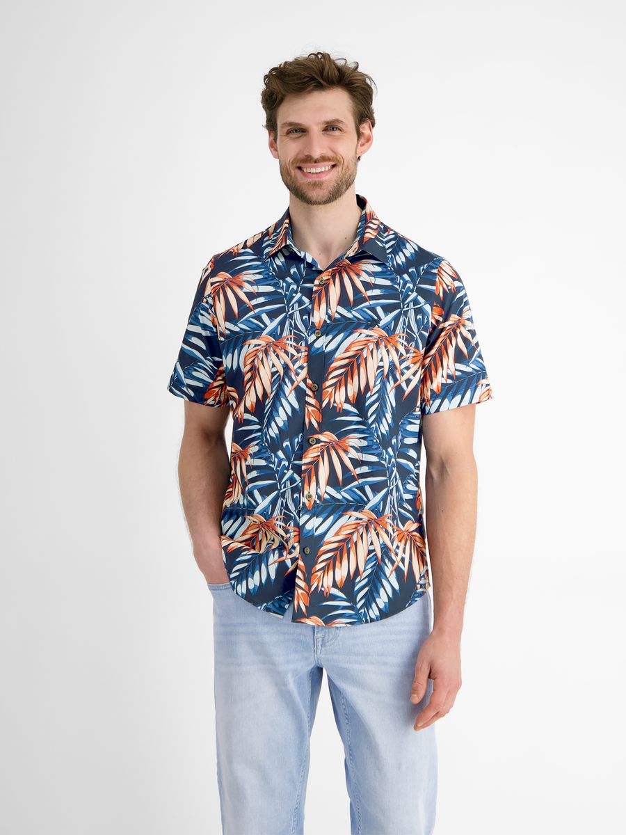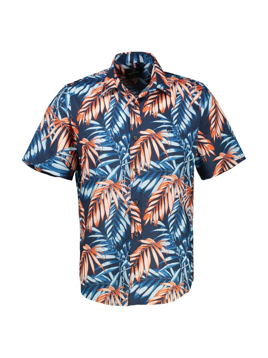 Halbarmhemd für Herren von LERROS mit sportivem Kent-Kragen. Das Freizeithemd besticht durch sein florales Muster im Hawaii-Design und die normale Schnittführung (REGULAR FIT). Die hochwertige Baumwollqualität verleiht dem Kurzarmhemd nicht nur eine lässige Optik, sondern trägt ebenso zum bequemen Tragekomfort bei.