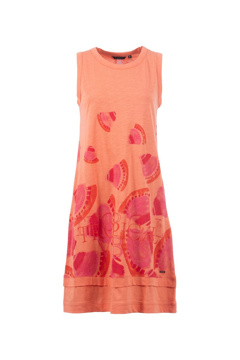 Legeres, ärmelloses Kleid mit Rundhalsausschnitt. Das Kleid überzeugt durch den sommerlichen Look in knalligen Farben mit abstraktem Melonenmotiv.