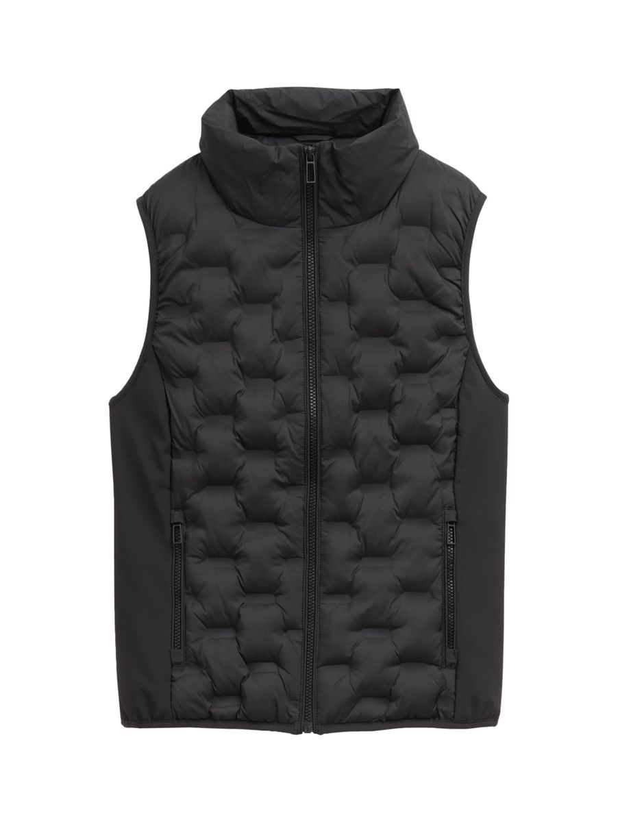 * Gesteppte Weste aus wasserabweisendem Material. Mit Stehkragen und seitlichen Eingriffstaschen vorne, die mit einem Reißverschluss zu schließen sind.