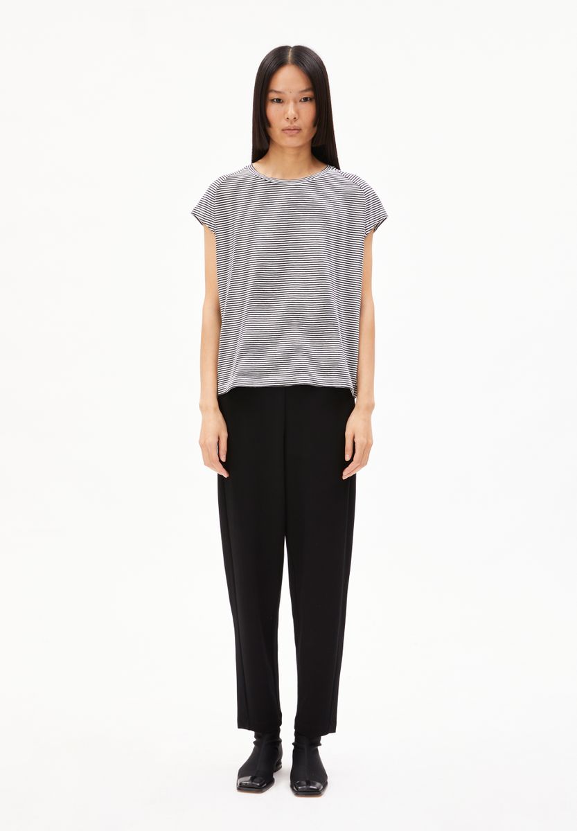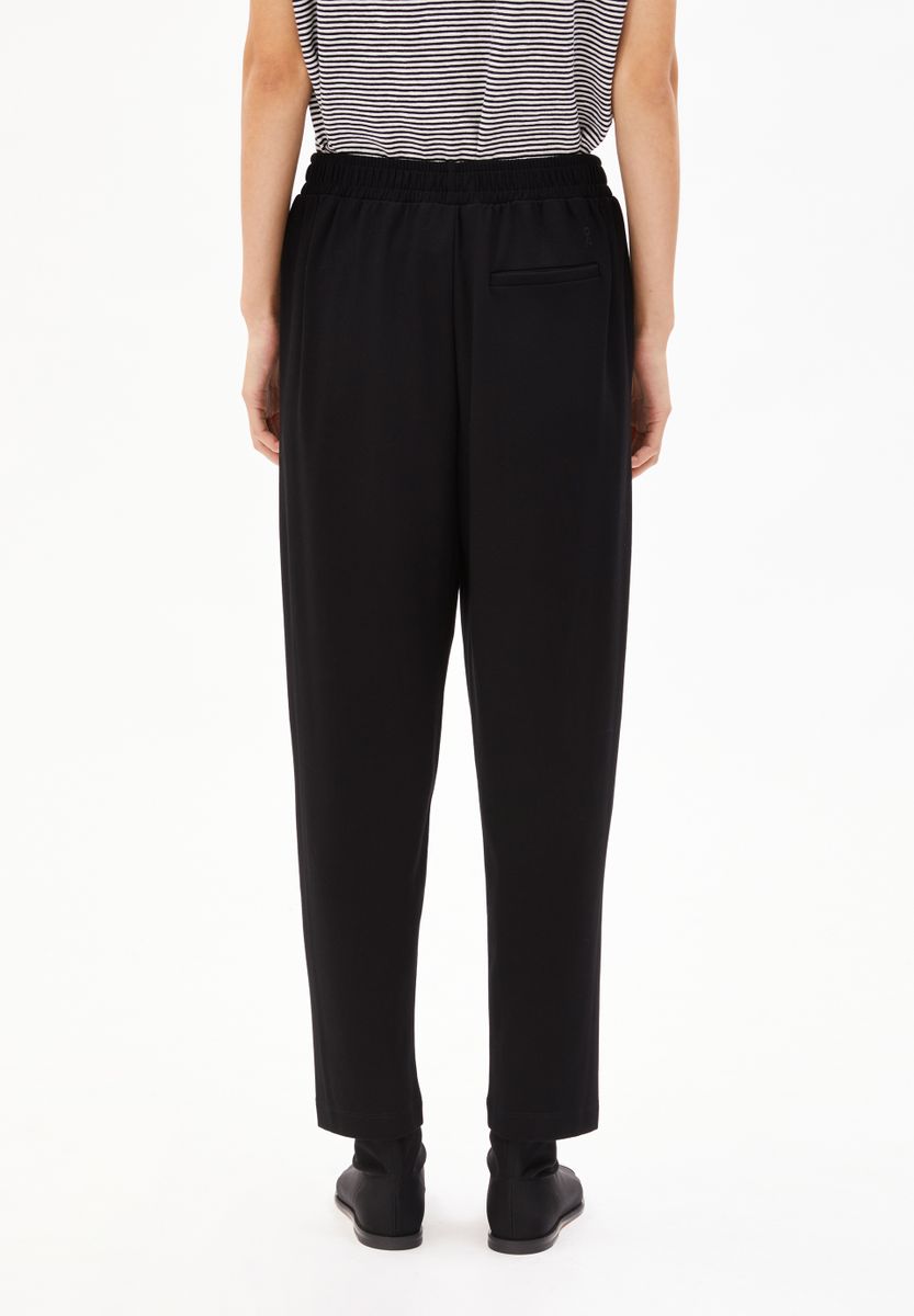 The MAGDAALENA trousers in soft jersey fabric offer a loose fit with a tapered leg, elasticated waistband and side slit pockets. LENZING™ ECOVERO™ viscose, recycled polyamide and elastane ensure a high level of comfort.
