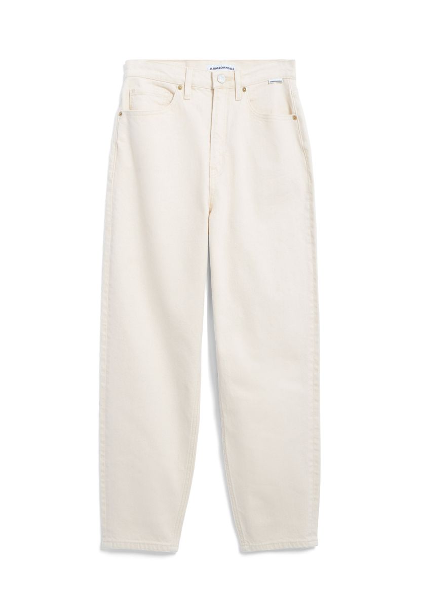 Our newly improved MAIRAA mom jeans feature a fitted waist and a slightly tapered leg with an ankle-length cut. Crafted from a premium blend of recycled cotton and TENCEL™ x REFIBRA™ Lyocell with a touch of stretch, they provide comfortable freedom of movement while adding a timeless touch to any outfit. | We recommend sizing down.