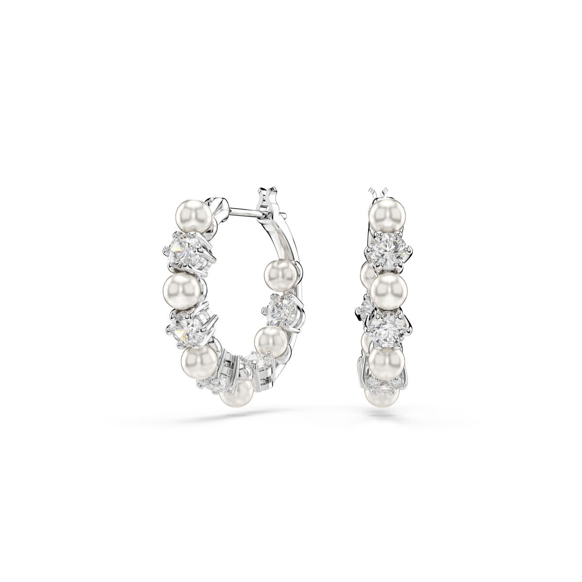 Beschreibung: Diese Matrix Ohrringe bringen einen einzigartigen, zeitgenössischen Twist in klassische Kreolen. Die rhodinierten Schmuckstücke glänzen abwechselnd mit Swarovski Zirconia und Swarovski Kristallperlen. Dieses außerordentlich elegante Statement hebt jedes Outfit aus dem Gewöhnlichen und macht es einzigartig.; Familie: Matrix