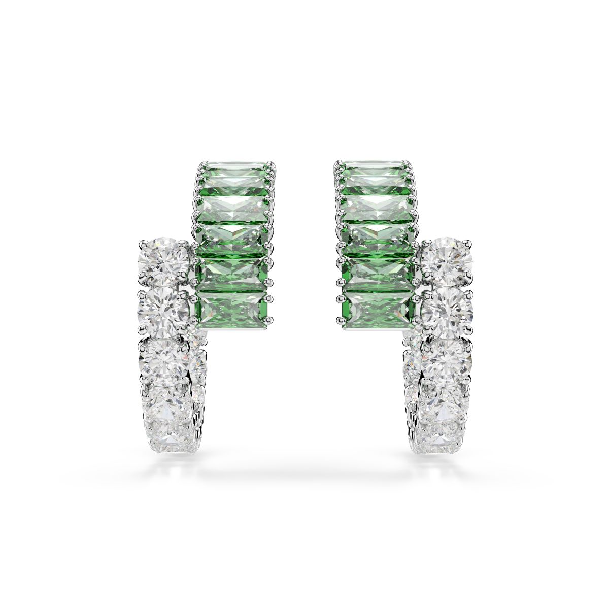 Beschreibung: Diese luxuriösen Matrix Ohrringe wurden für intensiven Glanz geschaffen. Die zierlichen Kreolen sind rhodiniert und präsentieren ein übereinanderliegendes Design mit klaren und grünen Swarovski Zirconia in Rund- und Baguette-Schliffen. Diese Ohrringe sind eine freudige Wahl für ein Styling, das sowohl tagsüber als auch abends alle Blicke auf sich zieht. Kombinieren Sie sie mit einem passenden Ring oder Armreif, um weitere Farbakzente zu setzen.; Familie: Matrix; Max. Länge: 2,4 cm; Effektive Länge: 23,5 mm
