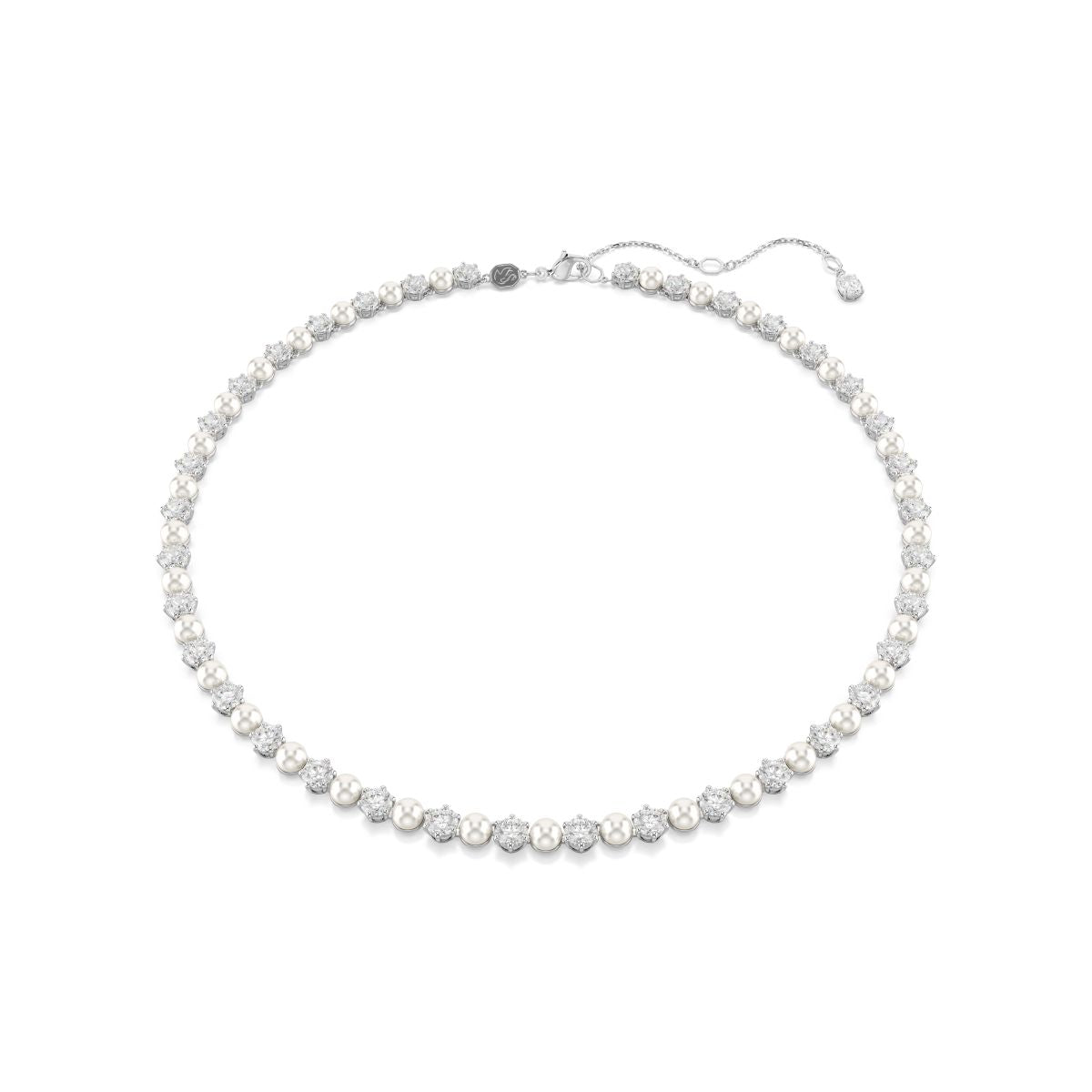 Matrix Tennis Halskette, Kristallperle, Rundschliff, Weiß, Rhodiniert
