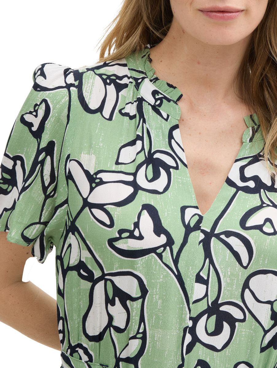* Langes, gemustertes Kleid mit Kordelzug an der Taille. Mit leichten Raffungen und Volants. Aus einem strukturierten Krepp-Material