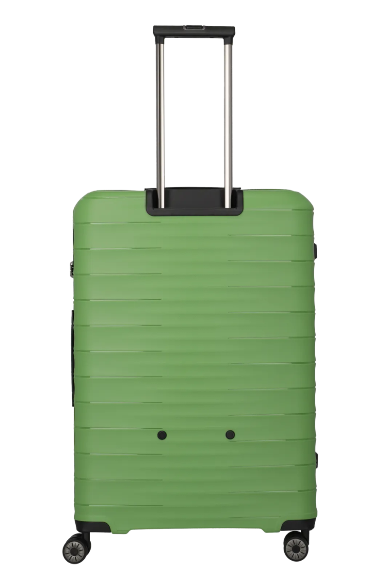 Eine gute Größe. Für alles, was deine Familie braucht. Mit dem großen Trolley der Produktserie Mooby kann man sich ganz entspannt auch auf längere Reisen begeben: Der Innenraum ist überaus großzügig dimensioniert und gibt mit seinen Packgurten und einer Packwand mit Reißverschluss-Fach der Garderobe zuverlässigen Halt. Der Trolley ist bemerkenswert elastisch, leicht und stark zugleich, das Außenmaterial ist aus recyceltem, kratzfestem Polypropylen. Vier leichtgängige, laufruhige Doppelrollen garantieren eine perfekte Mobilität – wo immer dich deine Reise hinführt.