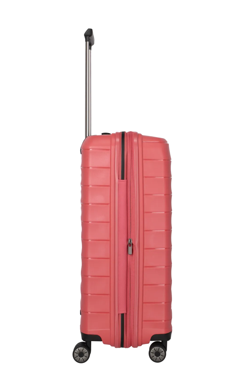 Mittlere Größe. Aber große Klasse. Ob privat oder beruflich: Der mittelgroße Trolley aus der Produktserie Mooby ist eine exzellente Wahl für nahezu jede mehrtägige Reise, alleine oder zu zweit. Sein Design ist zeitlos, seine Oberfläche kratzresistent und nachhaltig gefertigt aus recyceltem Polypropylen. Auch die inneren Werte überzeugen: Der Trolley M verfügt über praktische Packgurte, eine Packwand mit einem Reißverschluss-Fach, sowie viele weitere nützliche Details.