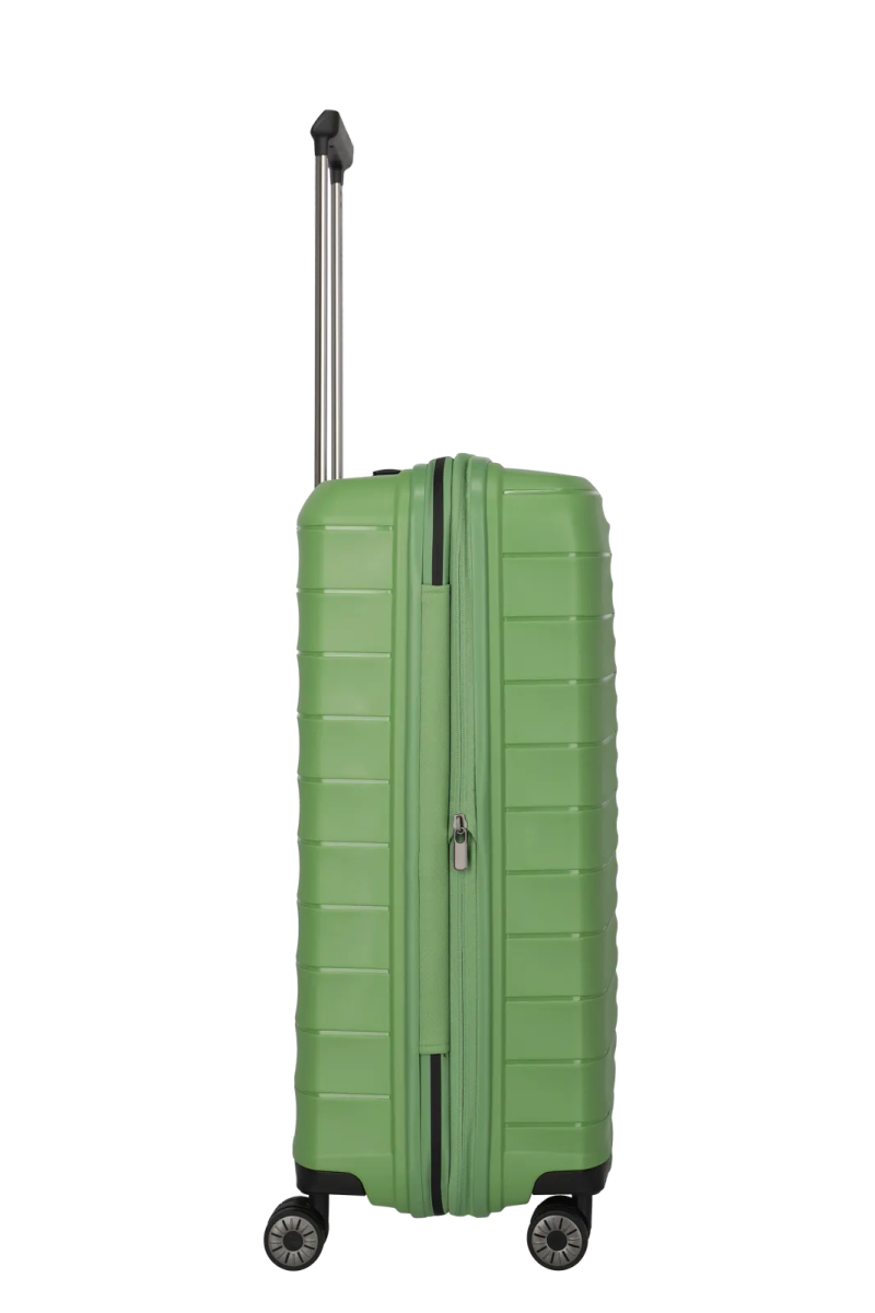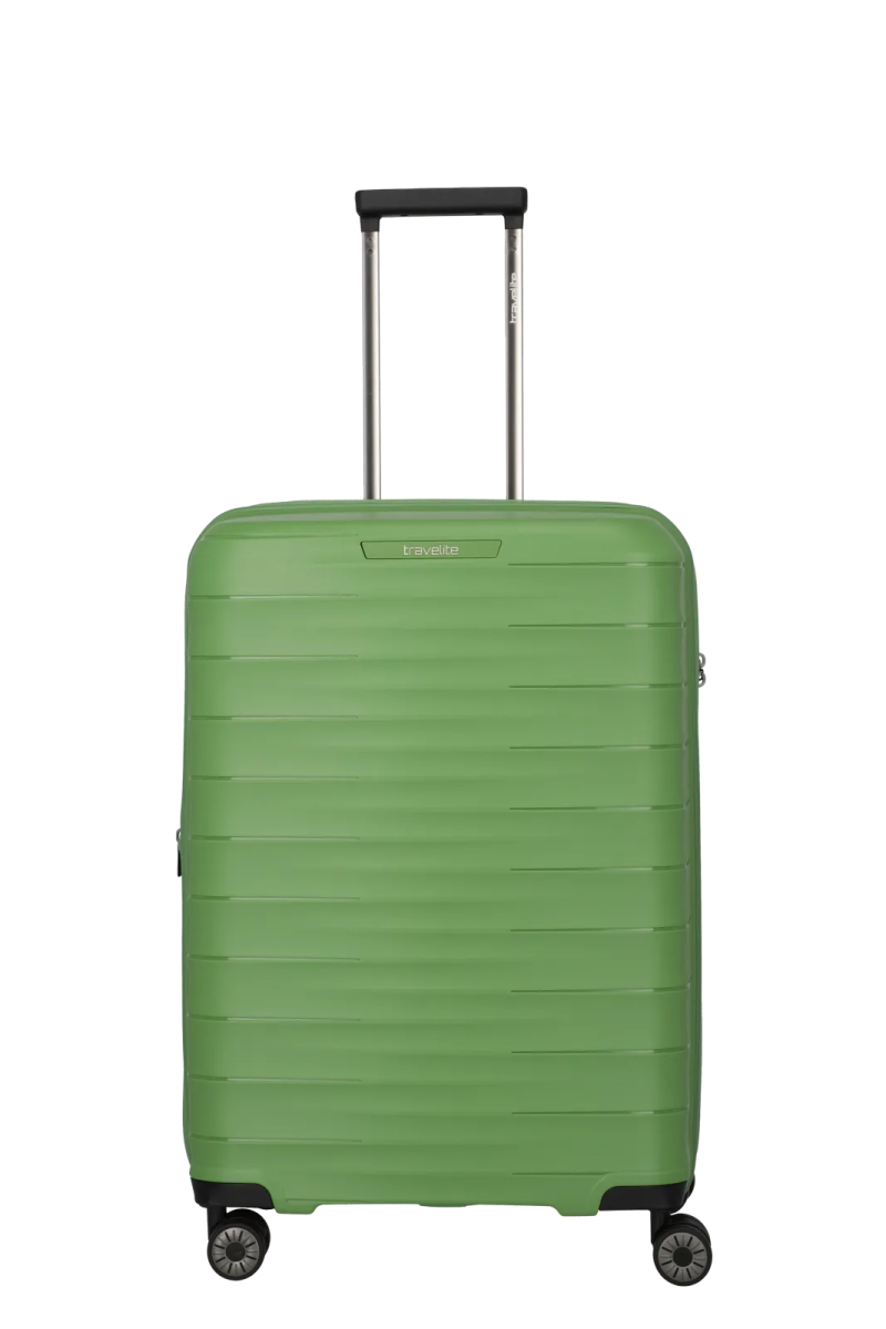 Mittlere Größe. Aber große Klasse. Ob privat oder beruflich: Der mittelgroße Trolley aus der Produktserie Mooby ist eine exzellente Wahl für nahezu jede mehrtägige Reise, alleine oder zu zweit. Sein Design ist zeitlos, seine Oberfläche kratzresistent und nachhaltig gefertigt aus recyceltem Polypropylen. Auch die inneren Werte überzeugen: Der Trolley M verfügt über praktische Packgurte, eine Packwand mit einem Reißverschluss-Fach, sowie viele weitere nützliche Details.