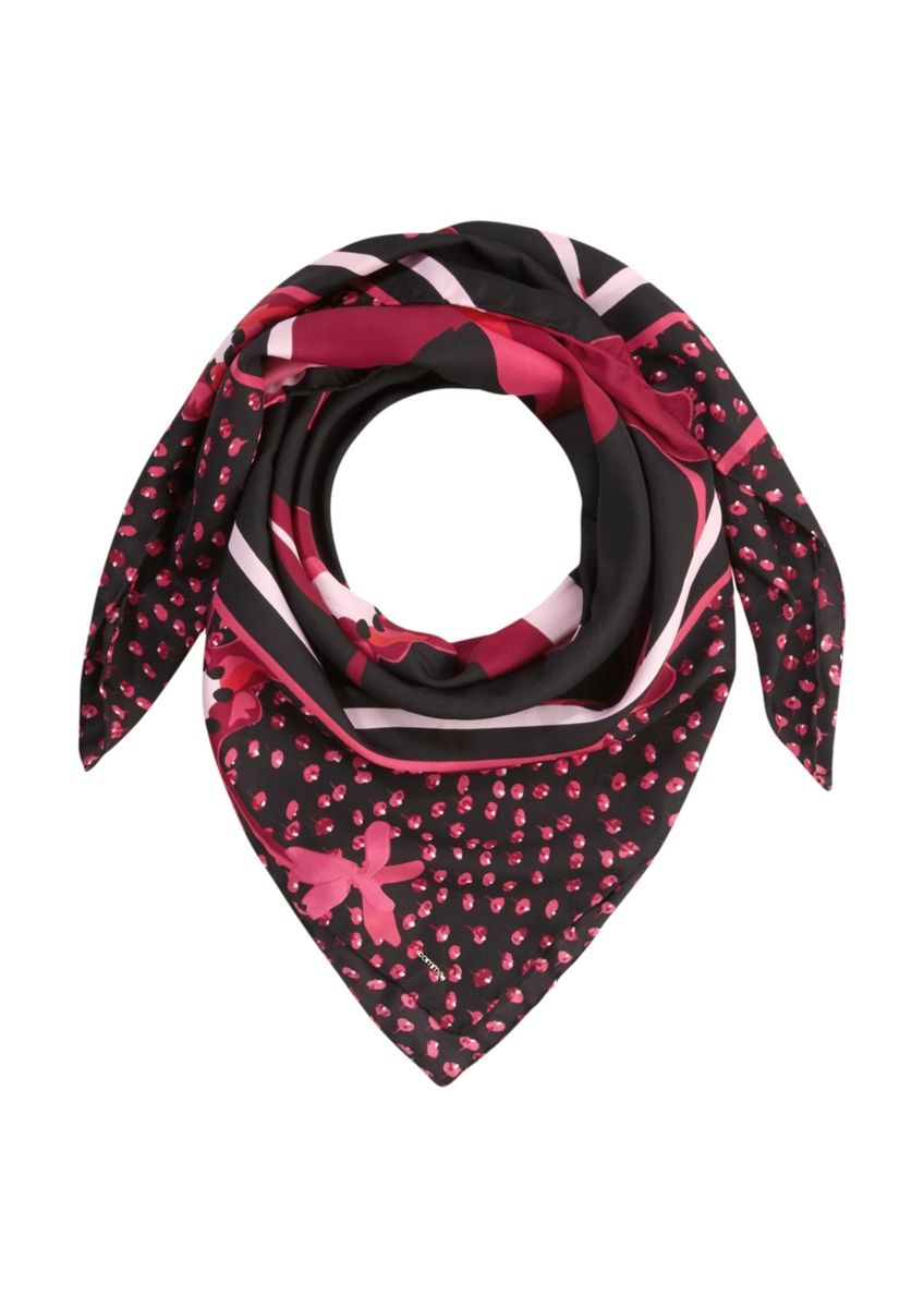 rundum schmal gesteppte Kanten, Maße des Schals ca. 90 cm x 90 cm, aus hochwertigen Materialqualitäten, das Allovermuster gibt dem Schal einen frischen modischen Twist