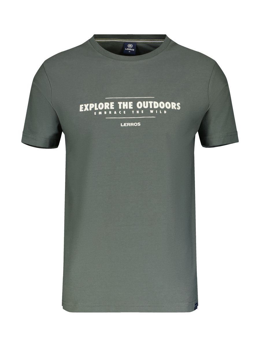 Unifarbenes T-Shirt von LERROS aus Baumwolle mit Brustprint und Rundhalsausschnitt. Ein bequemes, vielseitiges Kleidungsstück für Herren. Der Outdoor-Brustprint setzt einen sportiven Casual-Akzent.