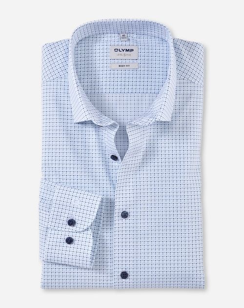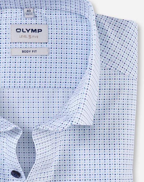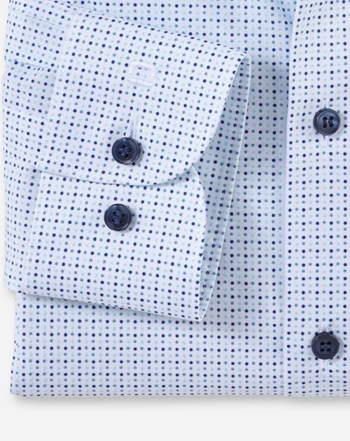 Auf den Punkt gebracht! Smartes Dot-Dessin auf körperbetonter Linie. Das ist die Erfolgsformel dieses OLYMP Level Five. Die glatte, kühl wirkende Comfort-Stretch-Textur sorgt für uneingeschränkte Bewegungsfreiheit bei Formstabilität, hautsympathischem Tragekomfort und Pflegeleichtigkeit. Sportiver Modern Kent.