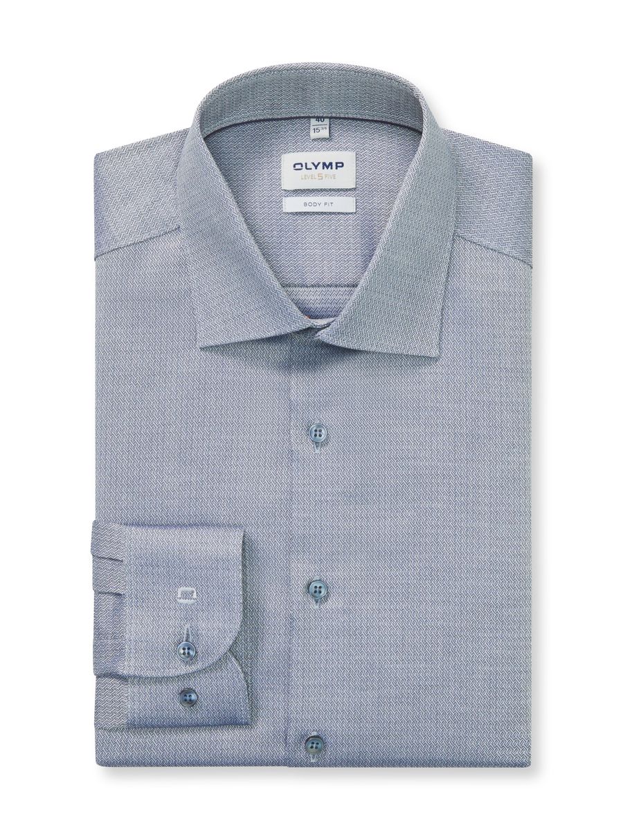 Ein edles OLYMP Level Five, einfarbig, breite Farbauswahl. Die feine Webstruktur aus Baumwolle mit minimalem Stretch-Anteil überzeugt durch den eleganten Changé-Effekt. Der maskuline New York Kent harmoniert perfekt mit dem körperbetonten Body Fit und einem lässig gerundeten Saum. Bügelleichtes Handling, hautsympathisches Tragegefühl.