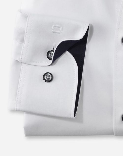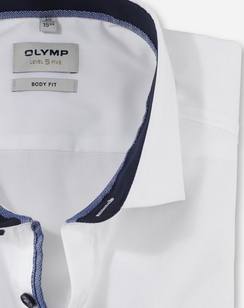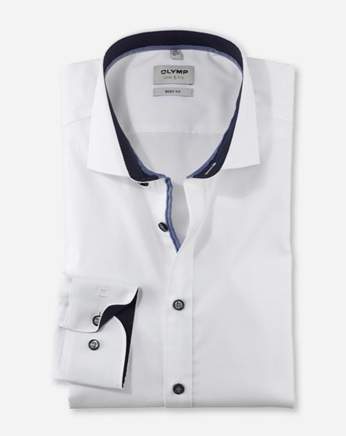Maskuline Eleganz im cleanen Uni-Design vermittelt dieses Businesshemd der Linie OLYMP Level Five. Raffiniert: Dezente Kontrastbesätze erzeugen modernen Appeal und suggerieren den offen getragenen Kragen als spannende Alternative zum klassischen Auftritt mit Krawatte. Die leichte, extra-feine Baumwollqualität hat GREEN CHOICE Standard und eignet sich optimal für wärmere Tage. Im körpernahen Body Fit und mit majestätischem Royal Kent designt, präsentiert sich hier ein moderner Business-Allrounder in bewährten Dresscode-Optik.