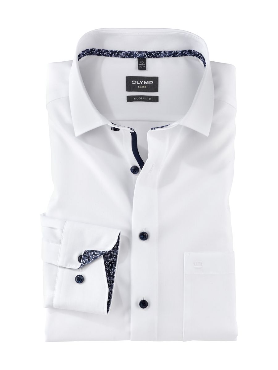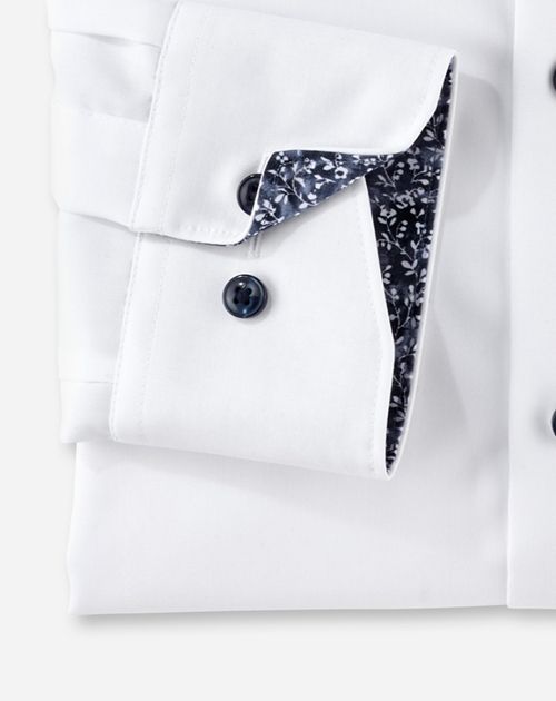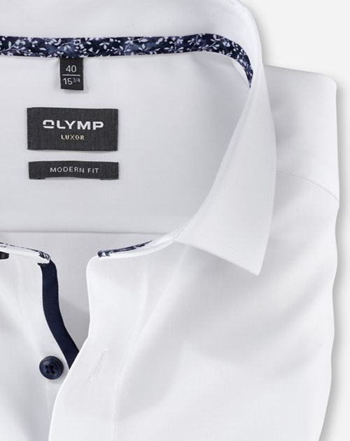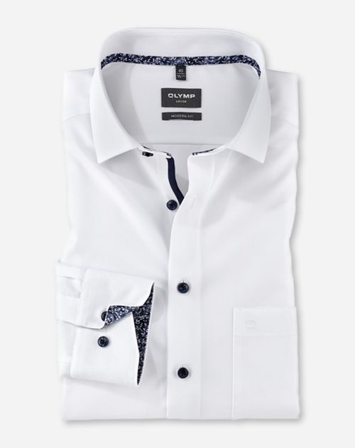 Chambray ist eine feine und luftige Textur aus edel schimmernden Baumwollgarnen. Das Gewebe ist atmungsaktiv und temperaturregulierend. Das unifarbige OLYMP Luxor Businesshemd in strahlendem Weiß ist mit einem kosmopolitischen Global Kent ausgestattet und sportlich körpernah geschnitten. Bügelfrei.