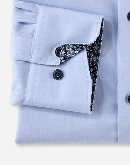 Chambray ist eine feine und luftige Textur aus edel schimmernden Baumwollgarnen. Das Gewebe ist atmungsaktiv und temperaturregulierend. Das unifarbige OLYMP Luxor Businesshemd in inspirierendem Bleu ist mit einem kosmopolitischen Global Kent ausgestattet und sportlich körpernah geschnitten. Bügelfrei.