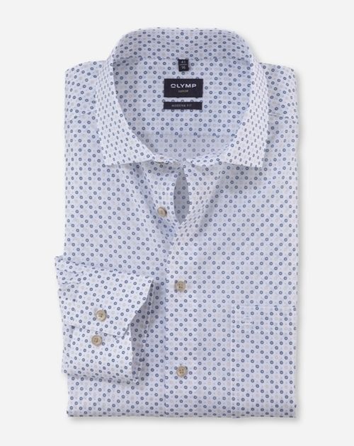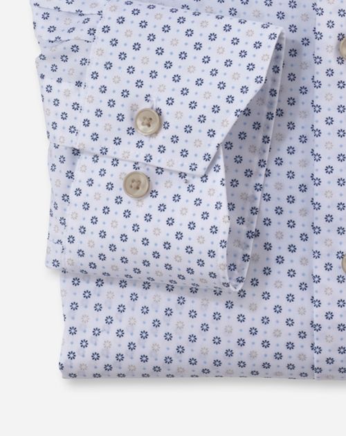 Perfekt für Frühjahr und Sommer: Glatt und kühlend fühlt sich die Popeline-Textur aus feinen Baumwollgarnen an. Das charmante Minimal-Dessin in harmonischer Farbkomposition schenkt dem sportiven OLYMP Luxor sommerliche Frische und Leichtigkeit. Der modische Global Kent unterstreicht die maskuline Business-Performance. Bügelfrei.