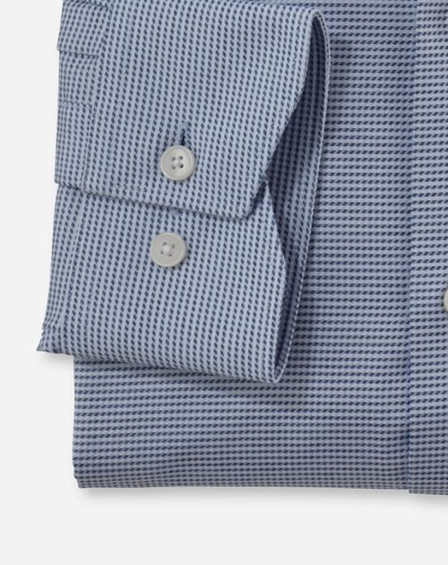 Softe Web-Textur, magischer Schimmer – die feinen Garnausspinnungen des OLYMP Luxor modern fit überzeugen sowohl durch hautsympathischen Tragekomfort als auch mit pflegeleichtem und bügelfreiem Handling. Der markante Global Kent vollendet die sportlich-elegante Linie. Akzentuiert auf Bleu.