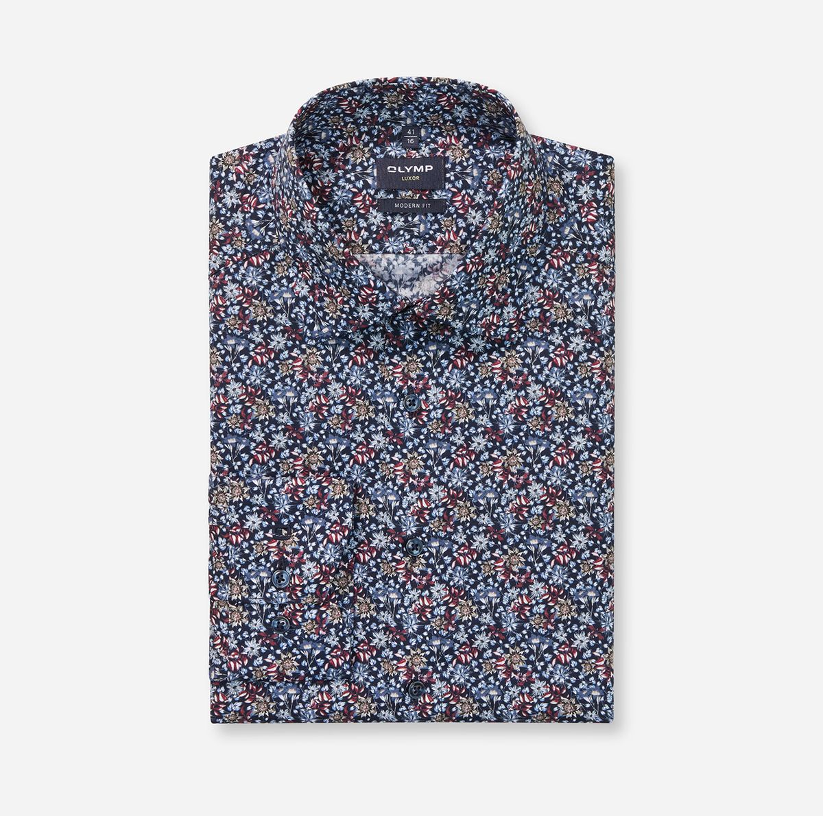 Das dynamische Gewebe aus 100 Prozent Baumwolle und der sportlich-körpernahe Schnitt dieses OLYMP Luxor modern fit unterstreichen die agile Performance. Das florale Muster in den Key-Colours der Herbst- und Winter-Saison sowie ein smarter New Kent setzen modische Akzente. Hautsympathisch, atmungsaktiv, bügel- und knitterfrei.