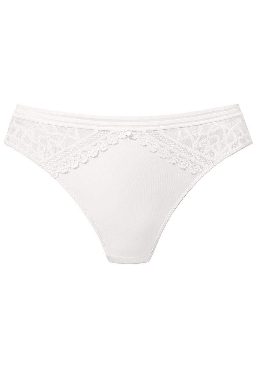 s.Oliver Femininer String mit graphischen, dezent transparenten Spitzeneinsätzen. Aus weichem Microtouch-Material. Mit modischem Accessoire in der vorderen Mitte. Mit eingearbeitetem Baumwollzwickel. Passende BHs aus der gleichen Serie erhältlich.