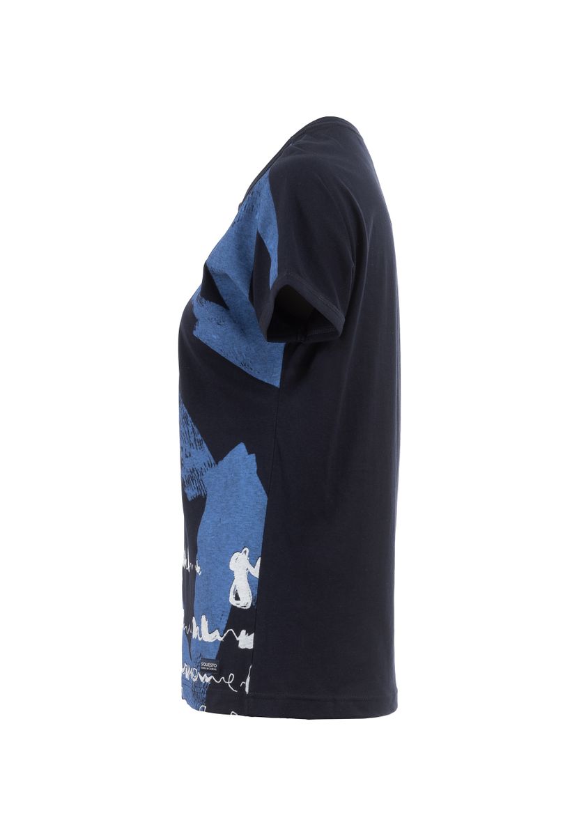 T-Shirt mit überschnittener Schulter und großflächigem Frontprint in cooler Optik mit Farbakzenten. Durch die einfarbig gehaltene Rückseite ergibt sich ein harmonisches Gesamtbild.