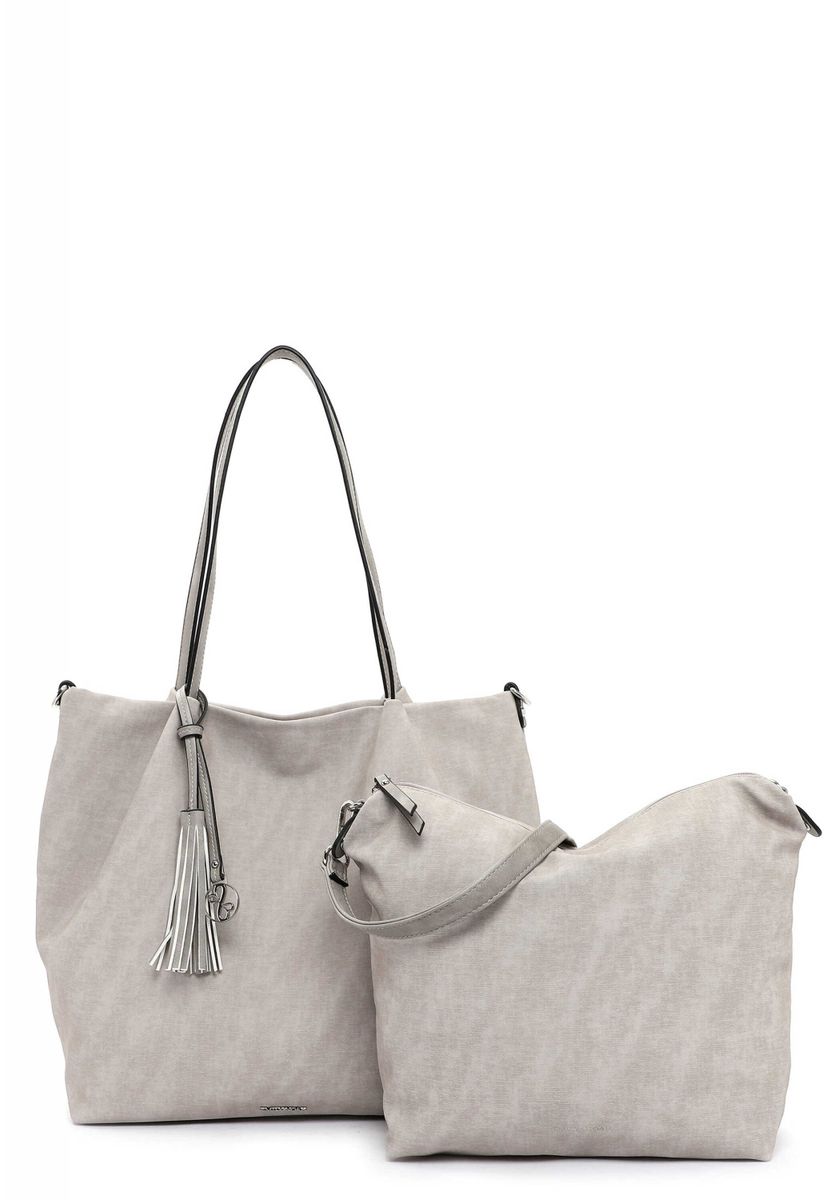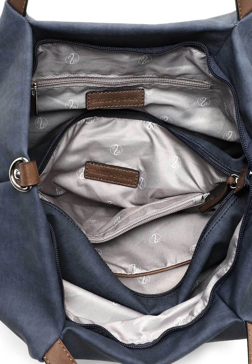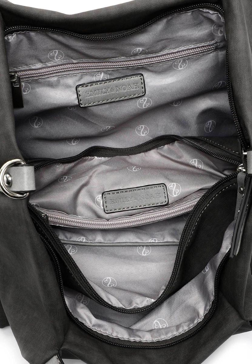 EMILY & NOAH - für stilsichere Frauen, die wissen, wer sie sind Eine Handtasche ist der Spiegel der Persönlichkeit einer Frau. Ob hundertpro geordnet oder etwas chaotisch - sie wird einfach heißgeliebt! Mit E&N Elke - dem schicken Shopper in Web-Optik mit längenverstellbarem, abnehmbarem Umhängeriemen - ist die neue und treue Wegbegleiterin jederzeit dabei. Ein unverzichtbares Accessoire für jede Lebenslage - der Shopper. Es ist so einfach, immer perfekt ausgerüstet zu sein. Die Marke EMILY & NOAH bietet tierfreundliche Styles und Designs an, die ausnahmslos aus veganen Inhaltsstoffen bestehen. Dafür steht besonders das durch die PETA vergebene Logo „PETA-Approved Vegan“, welches beste Standards bei der Produktion ohne tierische Inhaltsstoffe sichert. Das Modell besteht aus Feinsynthetik und lässt sich mit einem Reißverschluss verschließen. Die Web-Optik und das Uni-Design sind fein gearbeitet und verleihen dem Shopper einen edlen Look. Mit jedem Accessoire von EMILY & NOAH wird ein durch und durch individueller Stil geschaffen. Kombiniert mit einer schicken Hose, einem Kleid oder einer angesagten Bluse zeigen die Produkte des Labels echte Persönlichkeit. Der Shopper hat ein übersichtliches Hauptfach. Das Rückfach mit Reißverschluss ist perfekt, um extra Stauraum zu schaffen und Dinge unkompliziert griffbereit zu haben. Das Modell E&N Elke ist von der Haptik eher weich und daher besonders angenehm zu tragen. Einen verspielten Akzent setzt der hübsche Logo-Anhänger. Dieser neue Lieblingsbegleiter wird dank längenverstellbarem, abnehmbarem Umhängeriemen und zwei Tragegriffen einfach über der Schulter getragen. Viel Platz für alles, was man als Frau so mit sich herumträgt, bietet der Shopper.