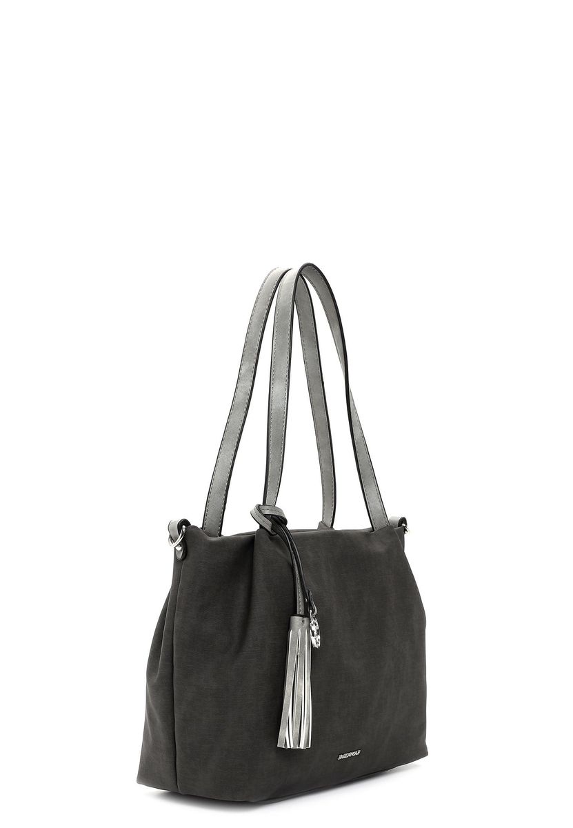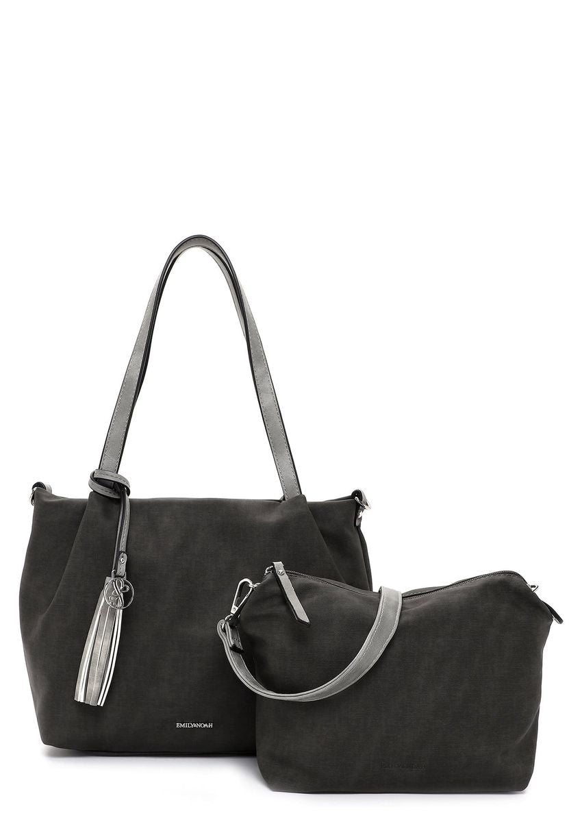 Tolle Auswahl attraktiver Taschen und Accessoires - EMILY & NOAH Eine Handtasche zeigt die Persönlichkeit einer Frau. Ob hundertpro geordnet oder leicht chaotisch - sie wird einfach heißgeliebt! Mit E&N Elke - dem schicken Shopper in Uni-Design mit längenverstellbarem, abnehmbarem Umhängeriemen - ist die liebste neue Wegbegleiterin immer dabei. Ein wahrer Alltagsbegleiter - der Shopper. Es ist so einfach, auch im größten Trubel gut auszusehen. EMILY & NOAH ist bekannt für seine tierfreundlichen Styles und Designs. Die Marke nutzt vegane Inhaltsstoffe und darf außerdem das „PETA-Approved Vegan“-Logo führen, welches ausschließlich an Unternehmen vergeben wird, welche durch die PETA zertifiziert wurden. Gefertigt ist das Modell, das sich mit einem Reißverschluss verschließen lässt, aus Feinsynthetik. Durch das Material ist es angenehm im Griff. Ein optisches Highlight ist der Shopper mit Web-Optik und dem Uni-Design. Mit jedem Accessoire von EMILY & NOAH wird ein ganz und gar individueller Stil geschaffen. Kombiniert mit einem schicken Hosenanzug, einem Kleid oder einer angesagten Bluse zeigen die Produkte des Labels wahre Persönlichkeit. Der Shopper hat ein übersichtliches Hauptfach. Ein Rückfach mit Reißverschluss bietet zusätzlichen Stauraum und ermöglicht den einfachen Zugang zu Dingen, die man zügig griffbereit haben möchte. Für alle, die eine weiche Haptik lieben - E&N Elke ist angenehm anschmiegsam. Für das gewisse Extra sorgt die Applikation mit dem Logo-Anhänger, die direkt ins Auge fällt. Mit einem komfortablen, längenverstellbaren und abnehmbaren Umhängeriemen und den zwei Tragegriffen wird der neue Lieblingsbegleiter ganz entspannt über der Schulter getragen. Manchmal braucht man etwas mehr Platz in der Tasche. In dieses Modell passt einfach alles - Geldbörse, Smartphone und zur Not noch ein Buch, das einem die Wartezeit auf die beste Freundin versüßt, wenn sie mal wieder zu spät kommt.