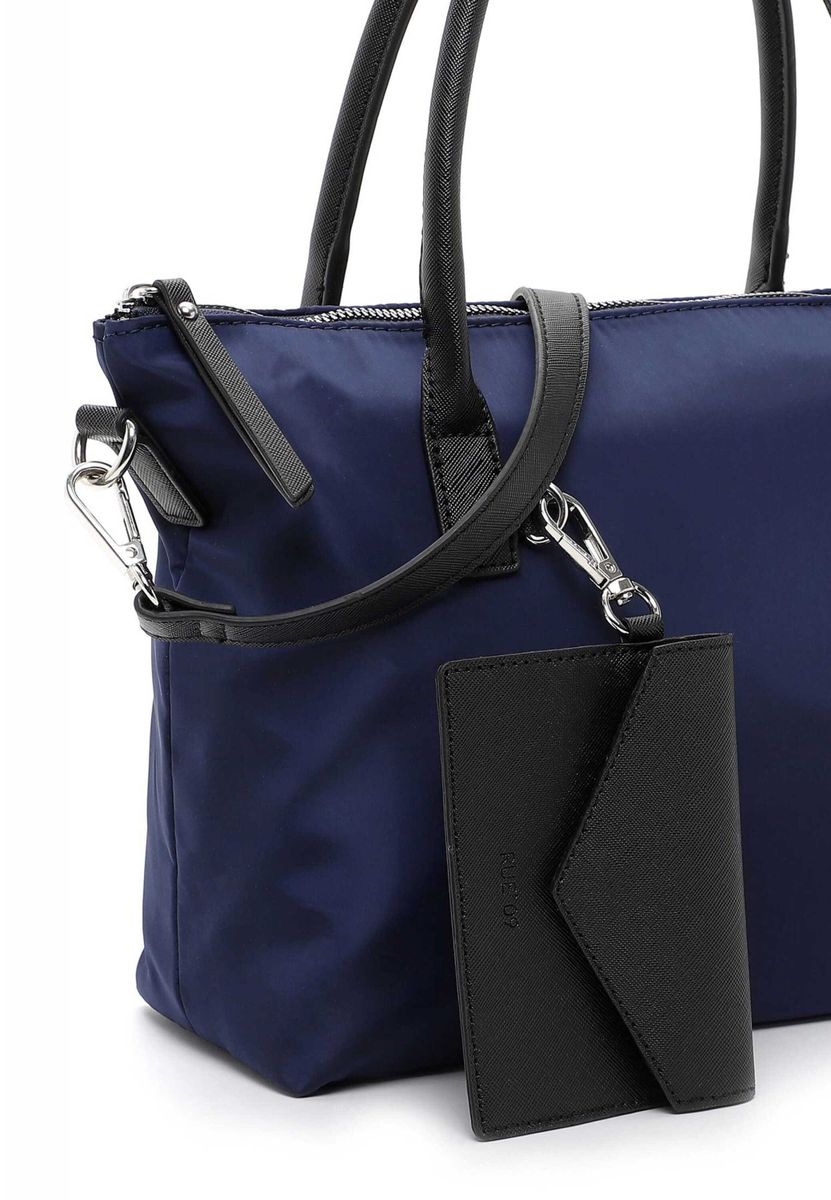 Der besondere Look in wunderschönen Farben Eine Handtasche ist wie eine gute Freundin, sie lässt einen nie im Stich. Mit E&N Marseille RUE 09 - dem schicken Shopper in Nylon-Optik mit längenverstellbarem, abnehmbarem Umhängeriemen - ist die neue und treue Begleitung im Alltag jederzeit dabei. Er ist ein lässiges Statement für den Alltag. Ein Shopper auf den immer Verlass ist. Die Marke EMILY & NOAH bietet tierfreundliche Styles und Designs an, die ausnahmslos aus veganen Inhaltsstoffen gefertigt sind. Dafür steht besonders das durch die PETA vergebene Logo „PETA-Approved Vegan“, welches höchste Standards bei der Herstellung ohne tierische Inhaltsstoffe garantiert. Gefertigt ist das Modell, das sich mit einem Reißverschluss verschließen lässt, aus Feinsynthetik. Durch das Material ist es angenehm im Griff. Mit seiner Nylon-Optik und dem zweifarbigen Design ist der hochwertige Shopper ein echter Hingucker. Mit jedem Accessoire von EMILY & NOAH wird ein ganz und gar individueller Stil kreiert. Kombiniert mit einem schicken Hosenanzug, einem Kleid oder einer angesagten Bluse zeigen die Produkte des Labels wahre Persönlichkeit. Der Shopper hat ein übersichtliches Hauptfach. Ein Reißverschluss-Fach auf der Rückseite schafft zusätzlichen Stauraum und ermöglicht den schnellen Zugang zu Dingen, die man immer zur Hand haben möchte. Für alle, die eine weiche Haptik lieben - E&N Marseille RUE 09 ist angenehm anschmiegsam. Ein Anhänger schmückt optisch und hebt das besondere Design dieses neuen Favoriten hervor. Mit einem komfortablen, längenverstellbaren und abnehmbaren Umhängeriemen und den zwei Tragegriffen wird der neue Lieblingsbegleiter ganz locker und entspannt als Schultertasche getragen. Die ideale Größe für alles, auf das man unterwegs nicht verzichten kann - hier passt sogar ein kleines Täschchen für Schminke und Co. mit rein.
