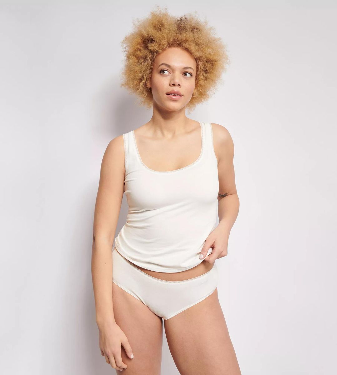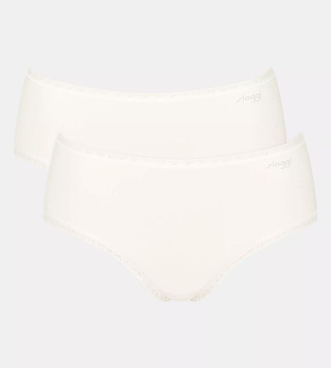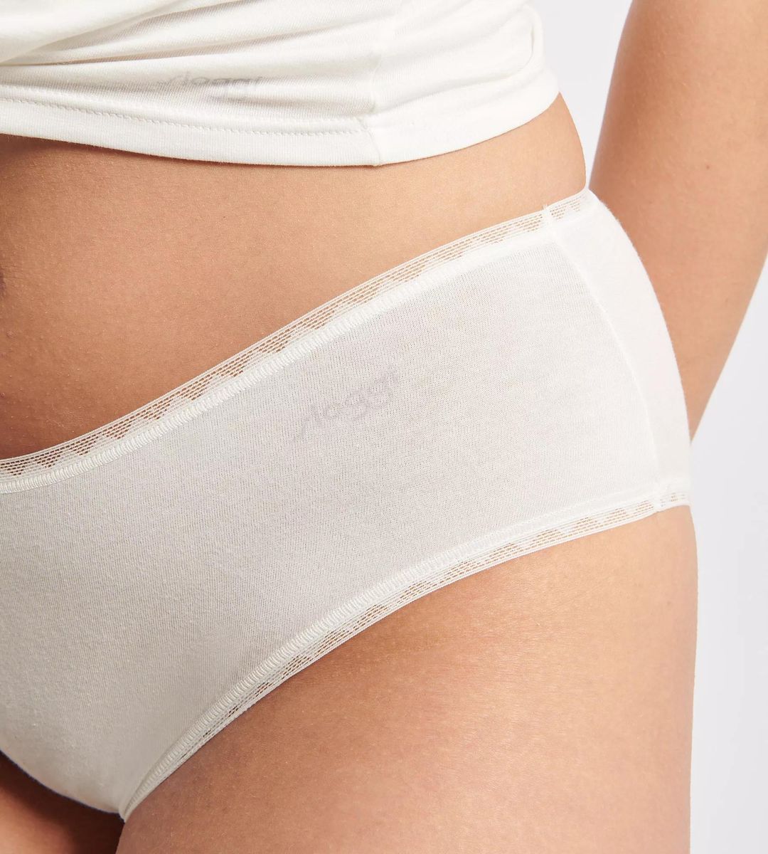2 Pack mit hochkomfortablen bedeckenden Midi Slips aus nachhaltiger Bio Baumwolle mit LYCRA®. Das hochwertige und wunderbar weiche Material sorgt für optimalen Tragekomfort. Moderne Einfassbänder in geometrischer Spitzenoptik machen aus diesen Slips ein echtes Must-have. Tolle Bewegungsfreiheit und perfekte Passform für jeden Tag. Diese Artikel sind Oeko Tex Standard 100 zertifiziert.